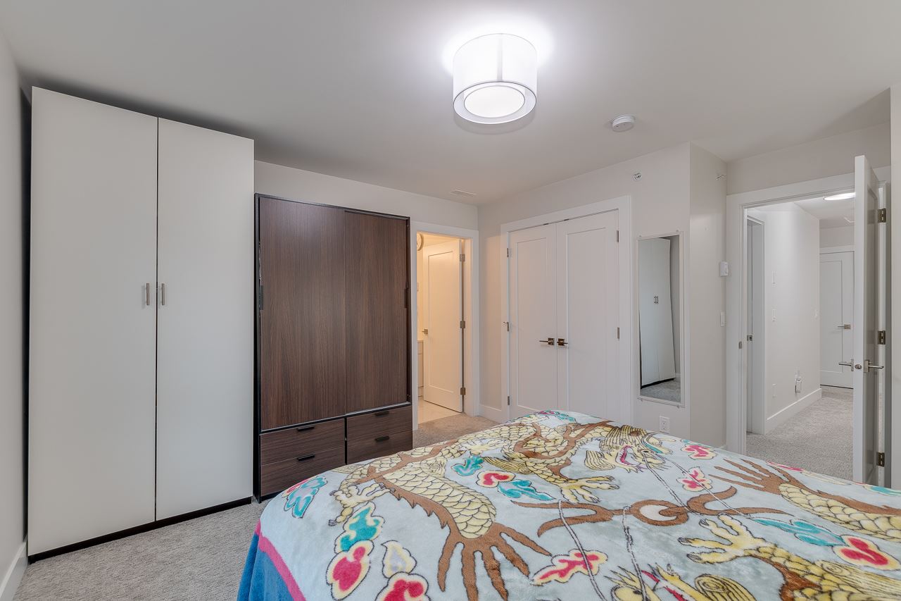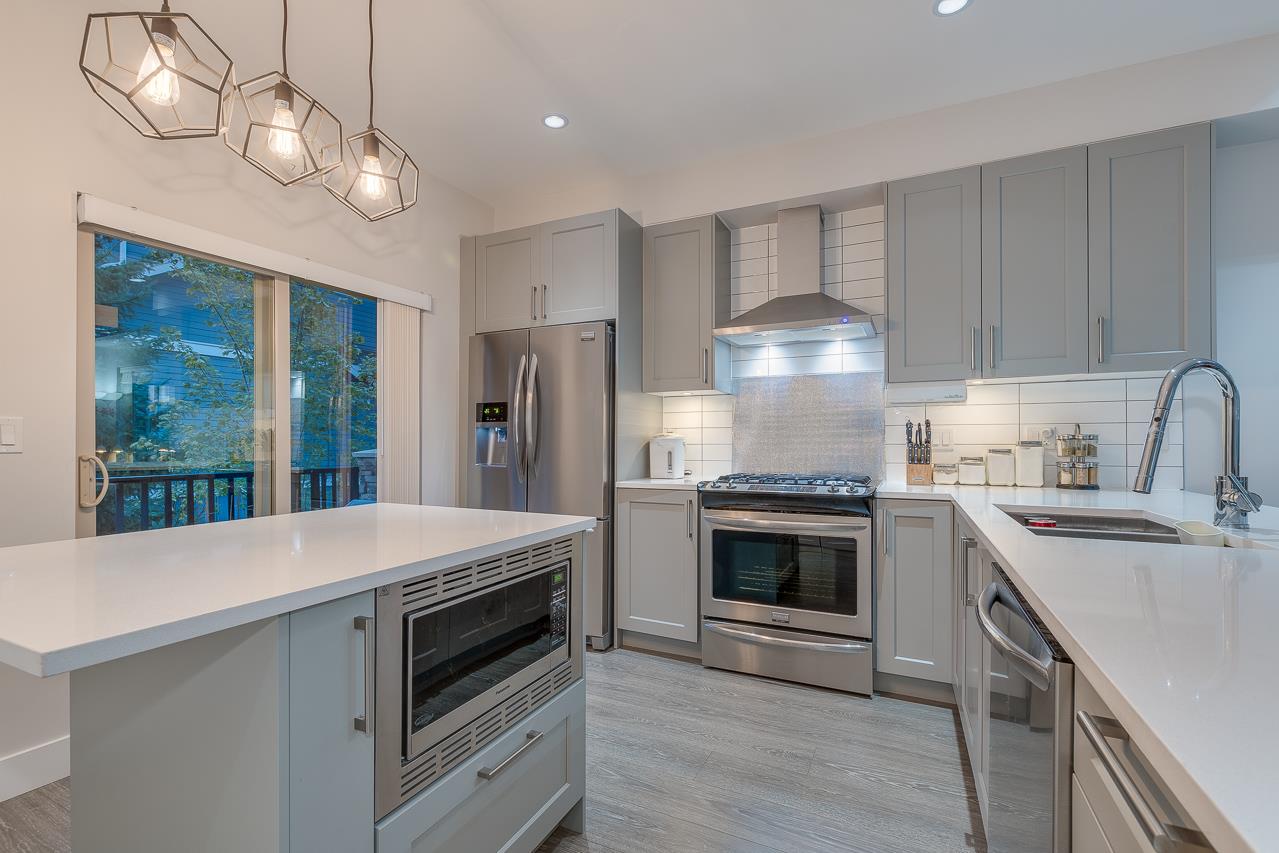Stunning 3 bed 2.5 bath corner unit townhome located in vibrant Queensborough. This gorgeous 3 level townhome was recently built this year and is a part of the wonderful 67-unit collection” Ewen”.“B” plan is the first to come to market and offers the largest square footage in the complex. Boasting 1663sqft,the main floor features open living space with 9’ ceilings. Kitchen features quarts counters, tile backsplash, under light cabinets, centre island, gas stove, ss appliances, hood fan w/led lighting,+BI microwave. Opens large living room/eating area with wonderful lighting. Up features 3 beds incl. large master w/4-piece ensuite.Home features private enclosed back yard, laminate floors, in suite laundry, RI security, and enclosed garage. Upgraded led lighting&windows (3k)2/5/10. GST Paid