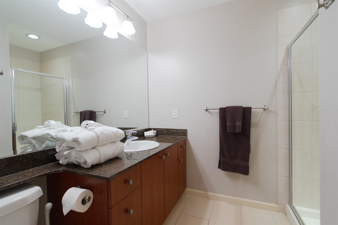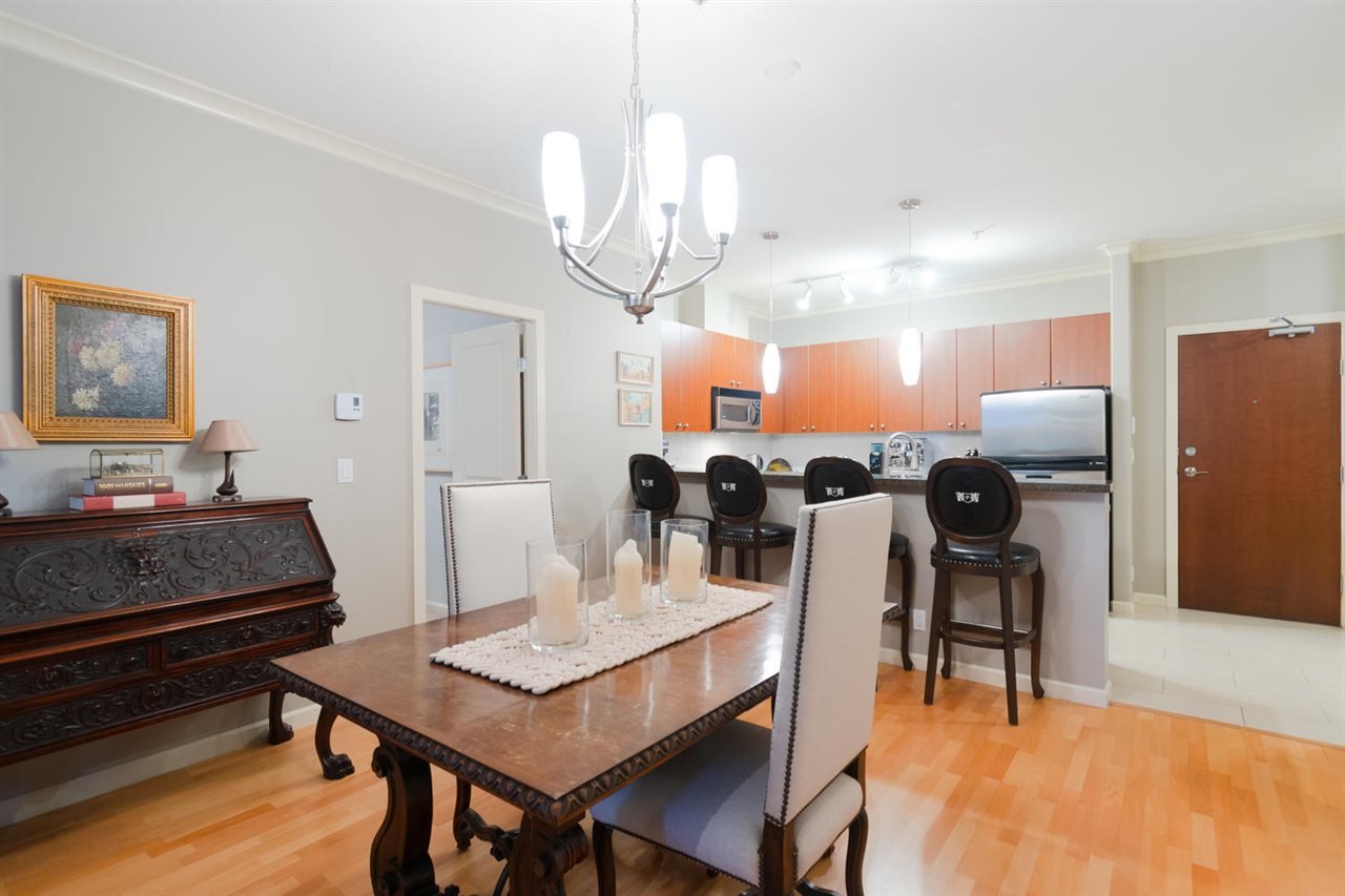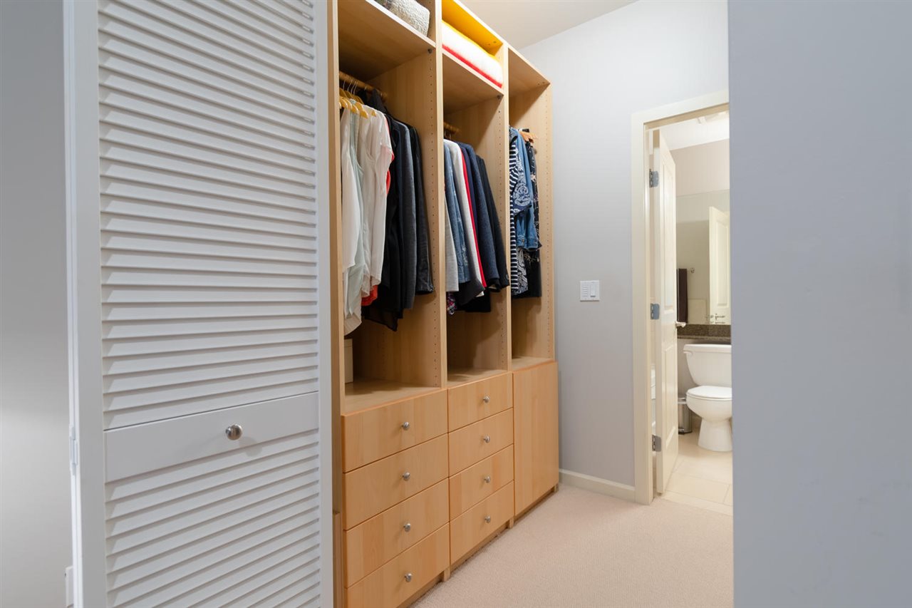 This immaculate 2 bedroom 2 full bathroom unit is sure to please even the fussiest buyer. The open kitchen with a large granite peninsula offers tons of cabinet/counter space - a chef's dream. The spacious living room extends to a very large (13'3 x 12'8) private deck with views of the Fraser. Master bedroom has access to the deck, a walk in closet and a 5 piece en-suite. The large second bedroom has his & her closets and a cheater en-suite. NEW hot water tank, washer/dryer and stove, TWO side by side parking stalls and storage locker. Great amenities in the building include a party room, fully equipped gym, guest suite and visitor parking. One dog or one cat permitted. This home shows remarkably well!