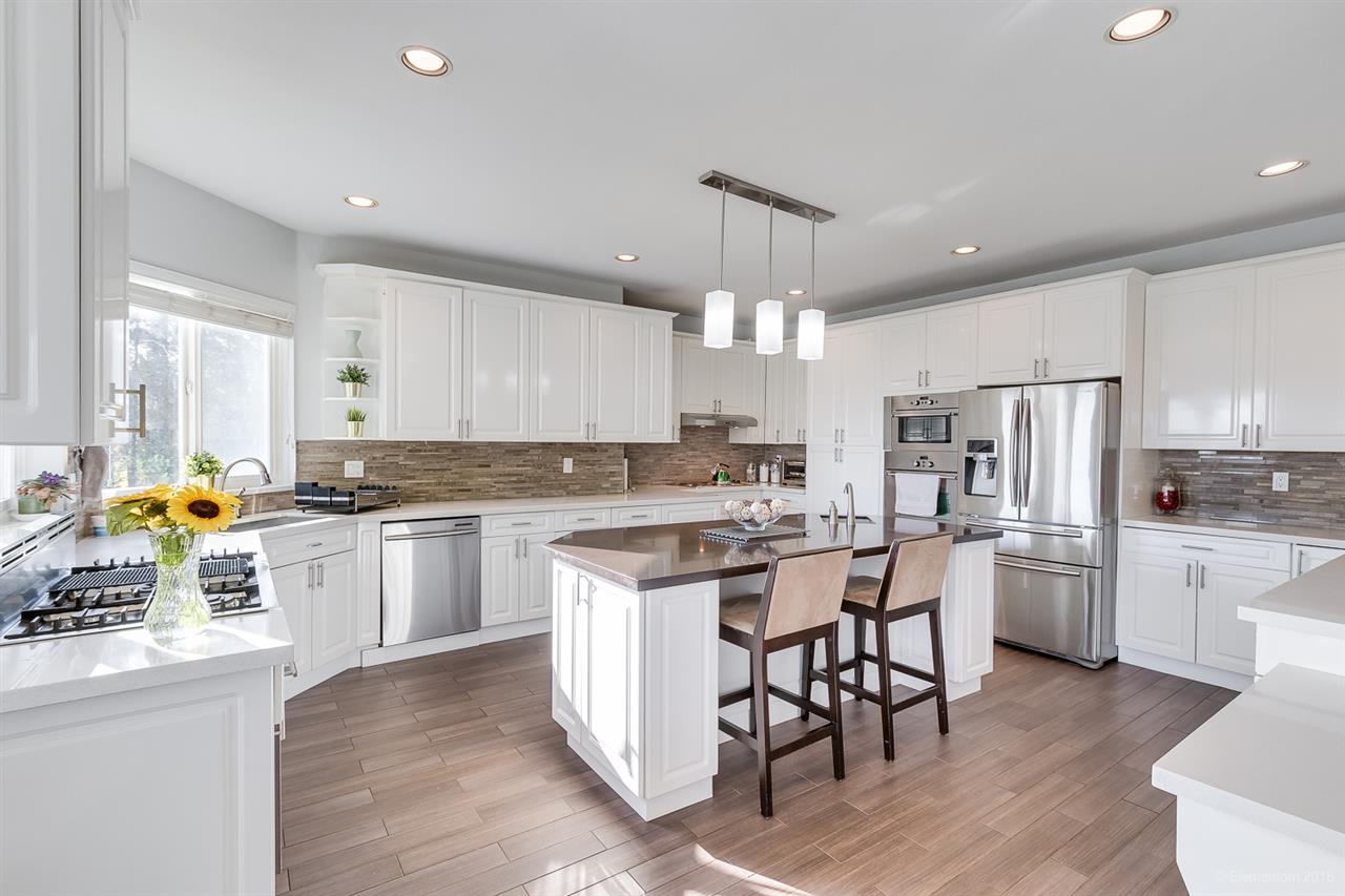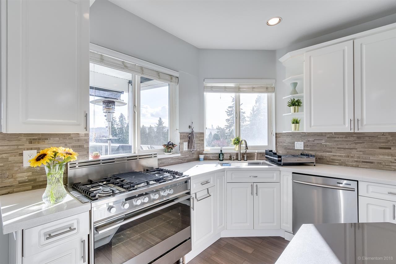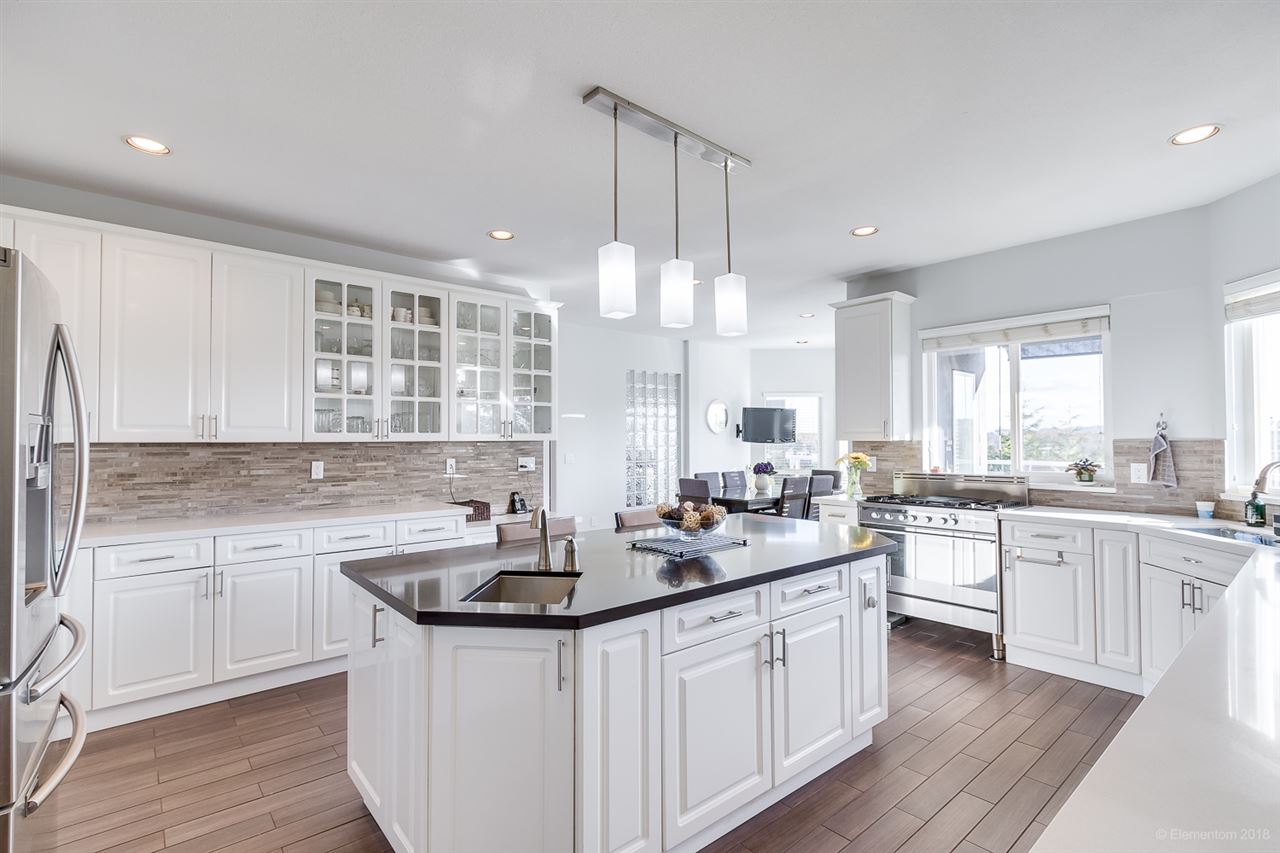 Beautifully maintained, custom-built 3 level home w/ southerly views located on a quiet cul-de-sac street. Overheight vaulted ceilings, skylights & F/P in living room, bright & spacious UPDATED chef's dream kitchen w/ elegant white cabinetry, s/s appls w/built-in wall oven, gas cooktop/range, + huge breakfast island. Formal dining rm w/ dble French doors, family rm w/ F/P + dble French doors to large balcony. Upstairs a HUGE master w/ F/P, walk-in closet, 4 pc ensuite, + a private balcony. 3 more bdrms, 2 walk-in closets, 2nd ensuite + full bthrm complete upper floor. Downstairs features a HUGE rec rm, laundry rm + a 2 bdrm suite w/ large living room, kitchen & dining area. Loads of extras: 8 zone H/W heat, silent floors, 2x6 construction. Great location with quick access to Lghd & Hwy 1.