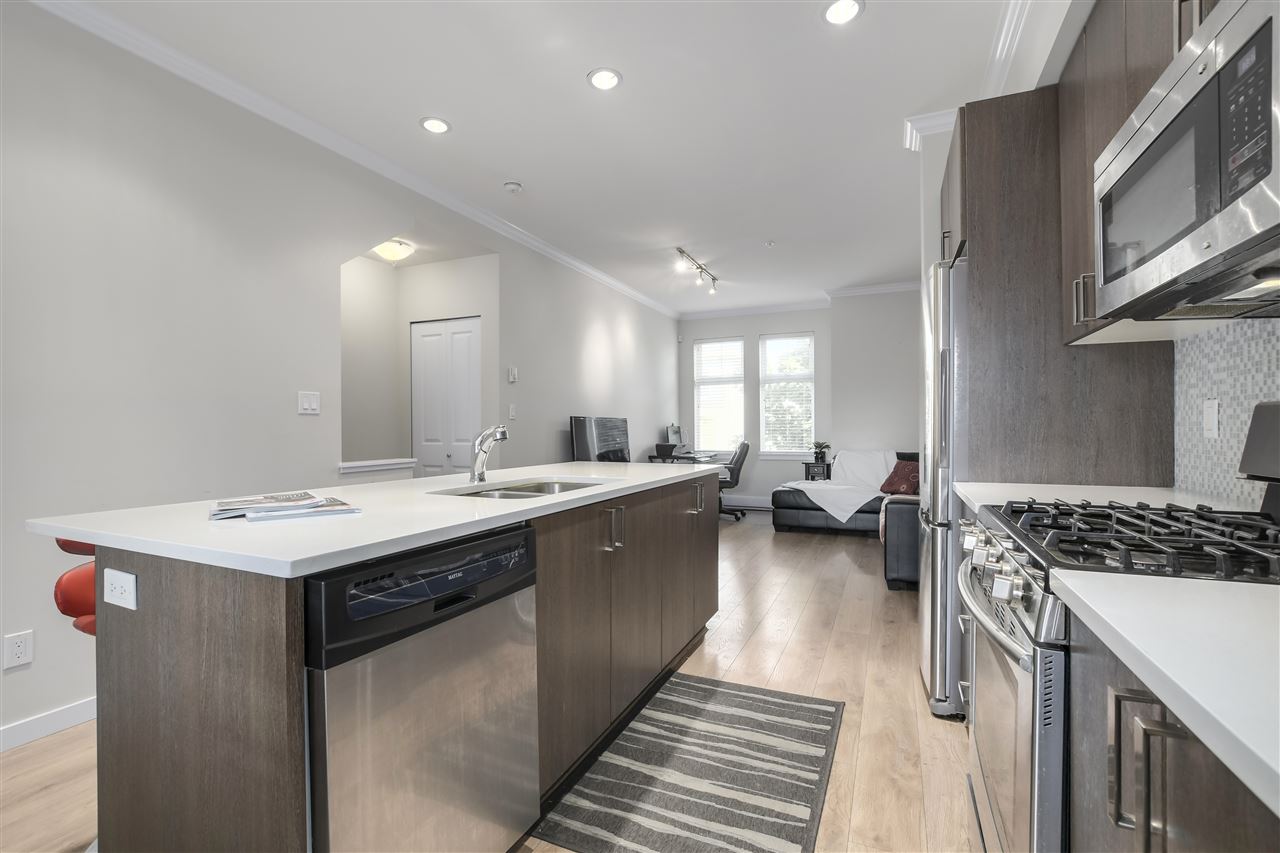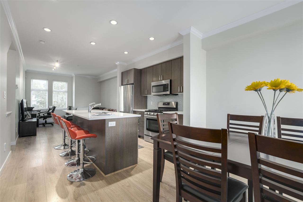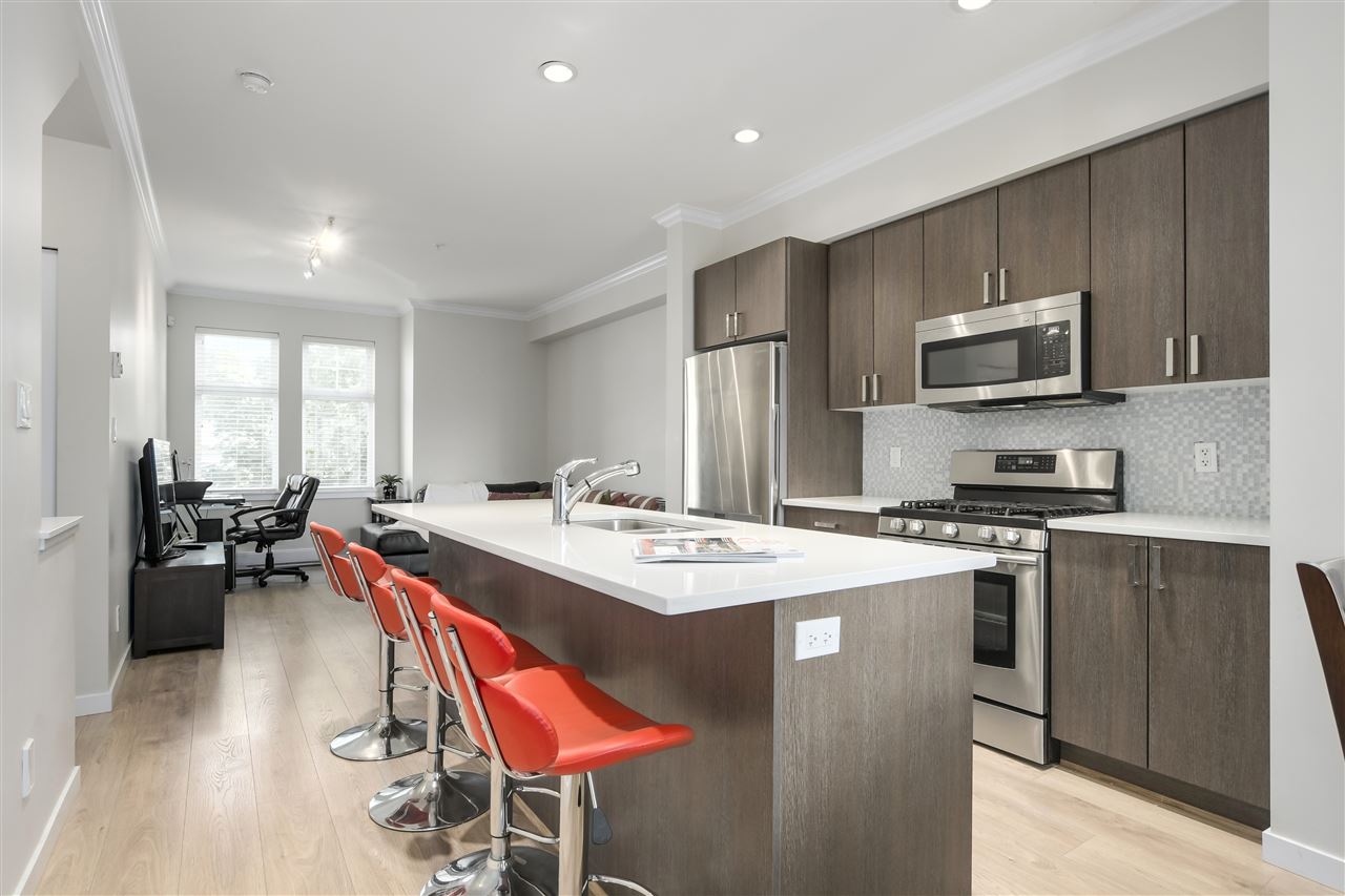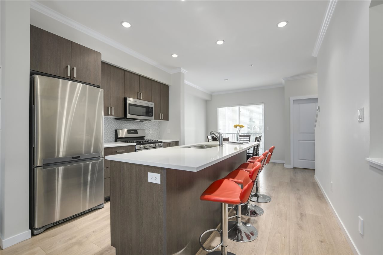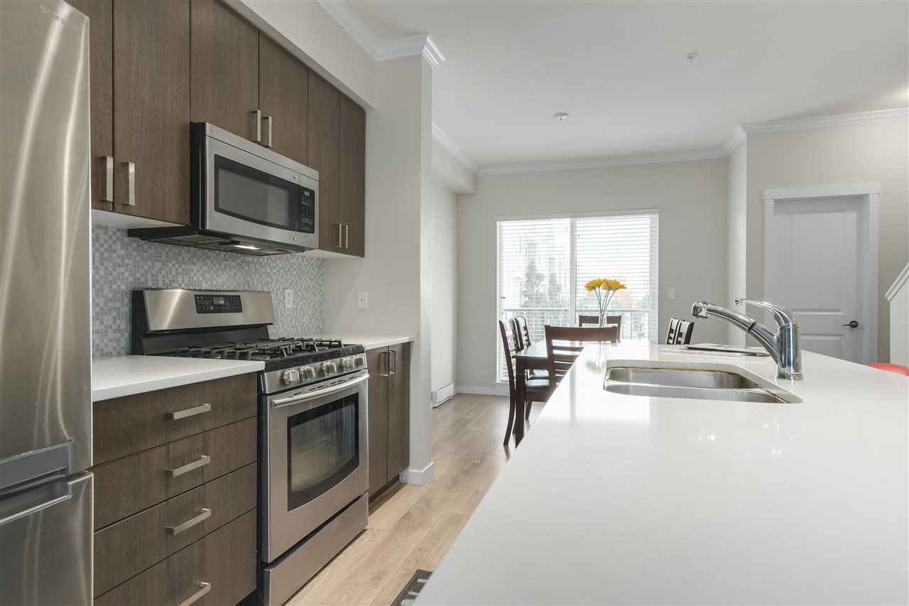 Make your new home at English Mews in the heart of Queensborough. This fully rainscreened complex is move in ready. Great layout with over 1100 sq ft of living. 9' ceilings and an open plan invite you into the gourmet kitchen with quartz countertops, stainless steel appliances, gas range & large island with seating. 3 good sized bedrooms all located on the upper floor with a lovely master ensuite. Just steps from the riverside trails and parks, shopping at Queensborough Landing, schools, and community centre. Easy highway access. Patio off main living space and rear fenced yard out back. Look no further, this is the one! Open Saturday December 8, 2-4.