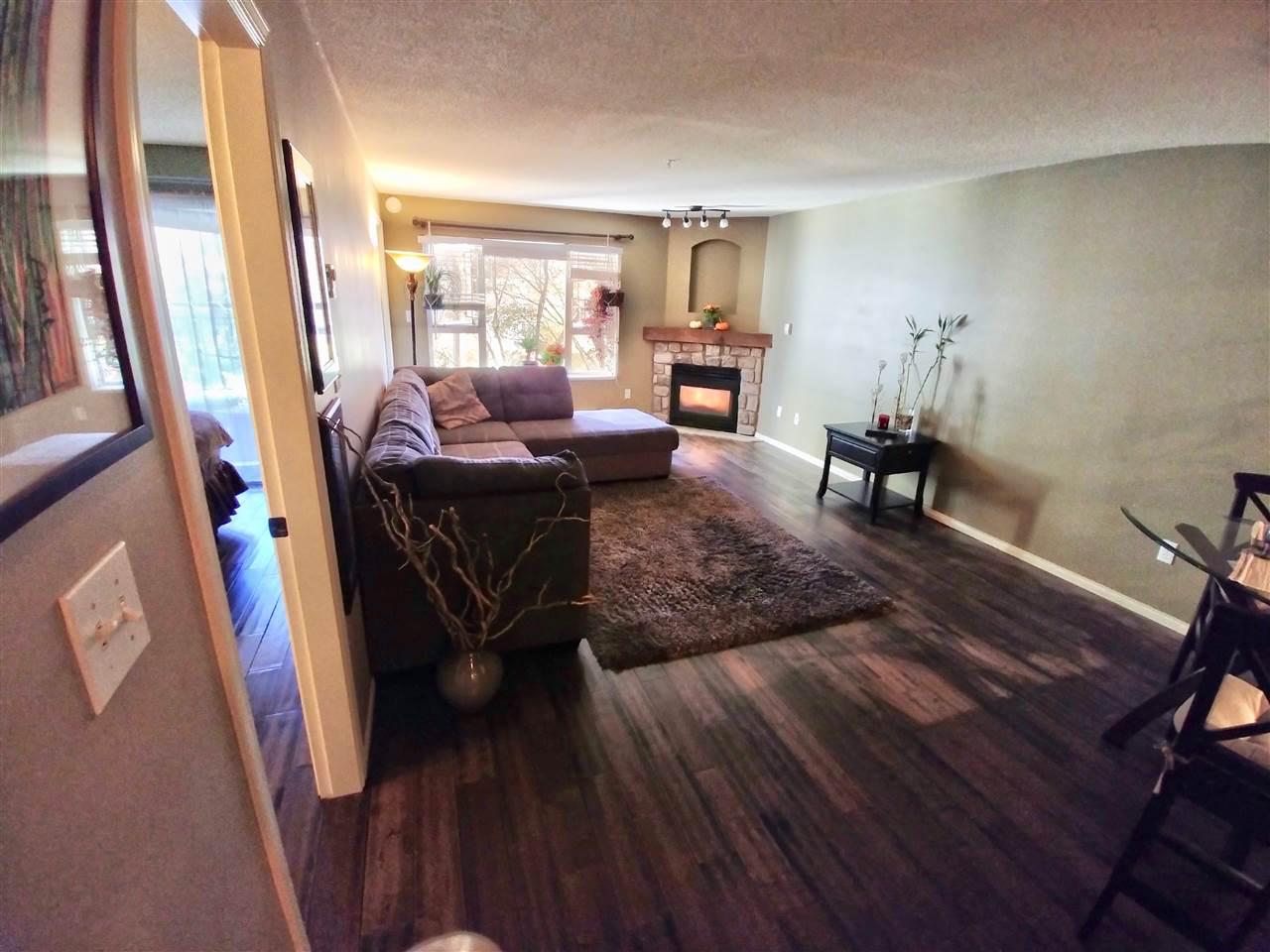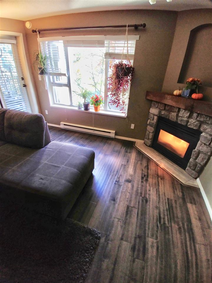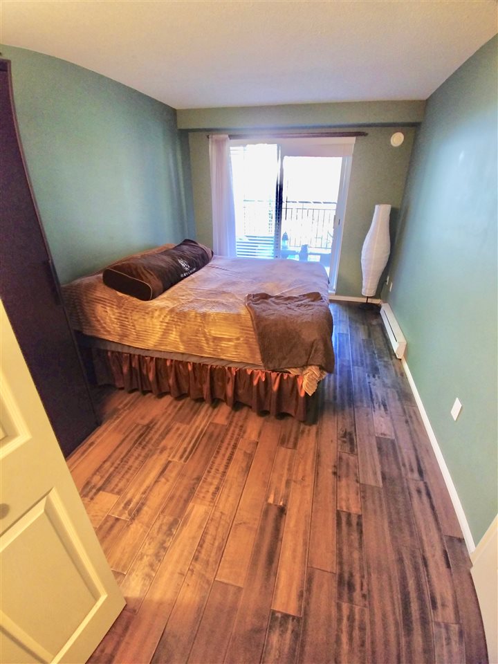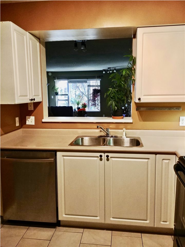 Spacious 1 bedroom, North East facing unit with beautiful treed/green space to look out on. Very private & comfortable on the quiet side of the building. Excellent condition. Master bedroom offers walk-in-closet with built in organizers. Well designed kitchen space with pass-through window to dining area. In-suite laundry. Combined living room & dining room features a cozy corner gas-fireplace and large windows. 9'4"x7'7" balcony. Secured underground 1 parking & storage locker. Pets allowed w/restrictions (One dog up to 50lbs or 2 dogs each less than 20lbs; or 2 cats). Rentals allowed w/restrictions (max 3 units). Close to shopping, Skytrain, New Westminster Quay Market and easy hwy access. All measurements approx. & quick possession possible.