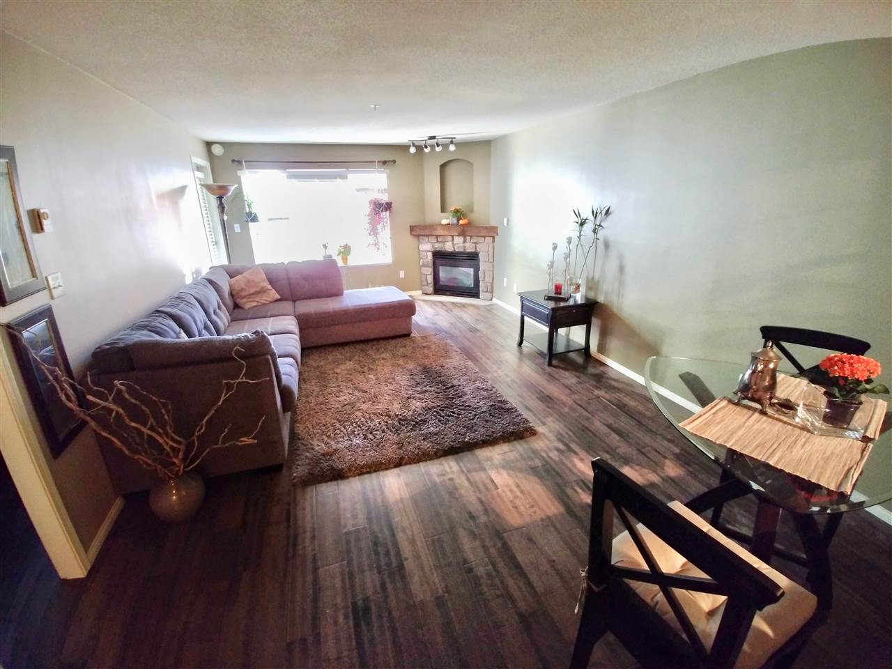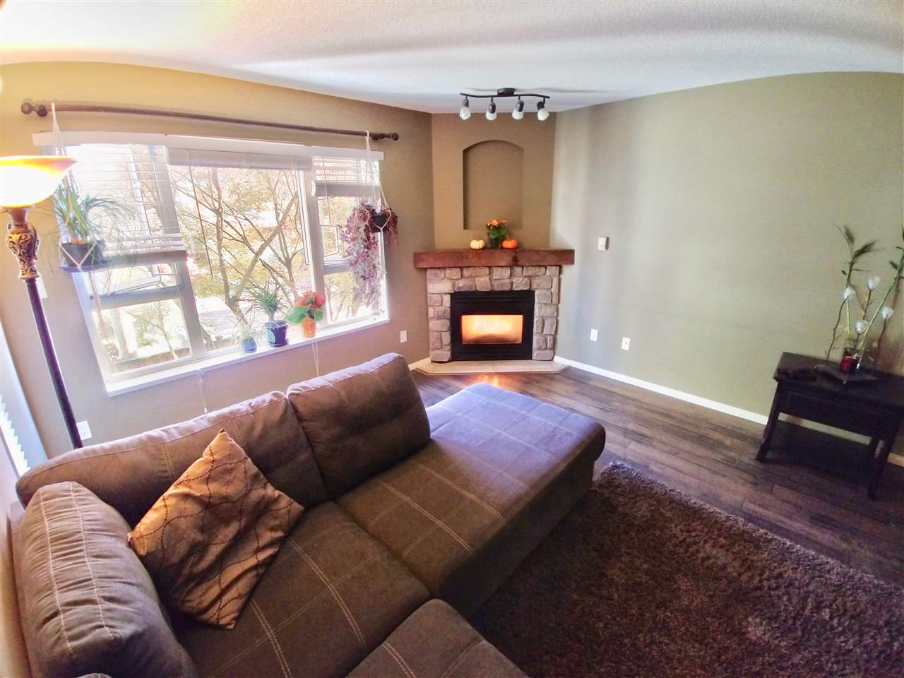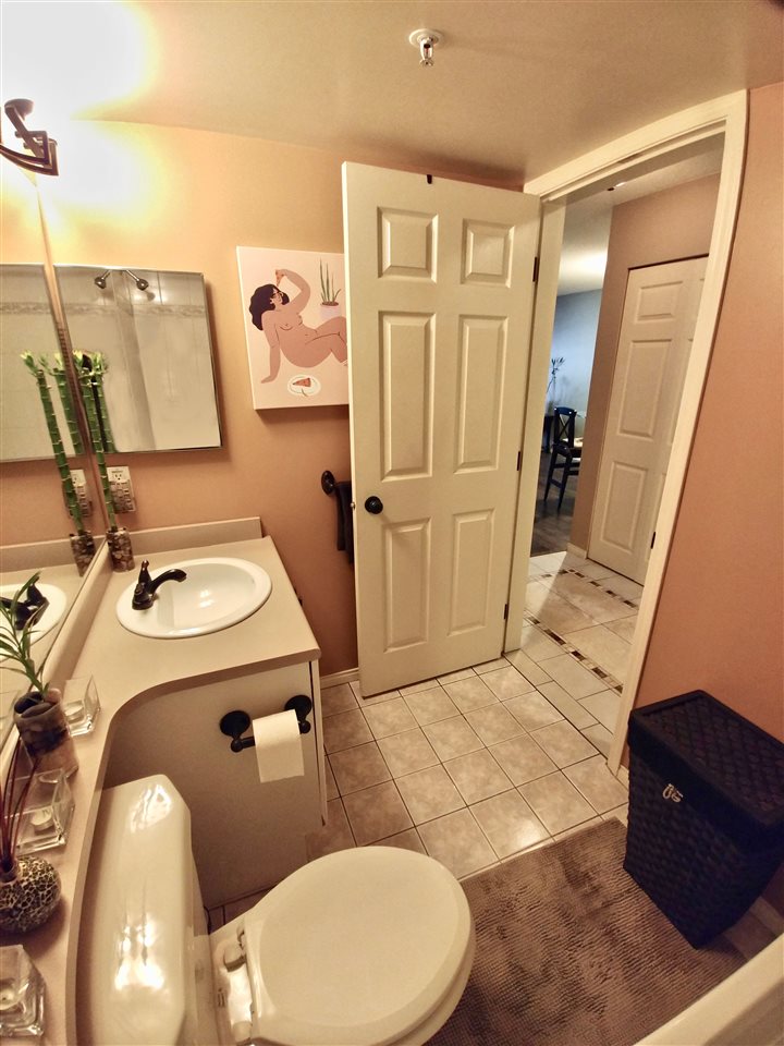 Spacious 1 bedroom, North East facing unit with beautiful treed/green space to look out on. Very private & comfortable on the quiet side of the building. Excellent condition. Master bedroom offers walk-in-closet with built in organizers. Well designed kitchen space with pass-through window to dining area. In-suite laundry. Combined living room & dining room features a cozy corner gas-fireplace and large windows. 9'4"x7'7" balcony. Secured underground 1 parking & storage locker. Pets allowed w/restrictions (One dog up to 50lbs or 2 dogs each less than 20lbs; or 2 cats). Rentals allowed w/restrictions (max 3 units). Close to shopping, Skytrain, New Westminster Quay Market and easy hwy access. All measurements approx. & quick possession possible.