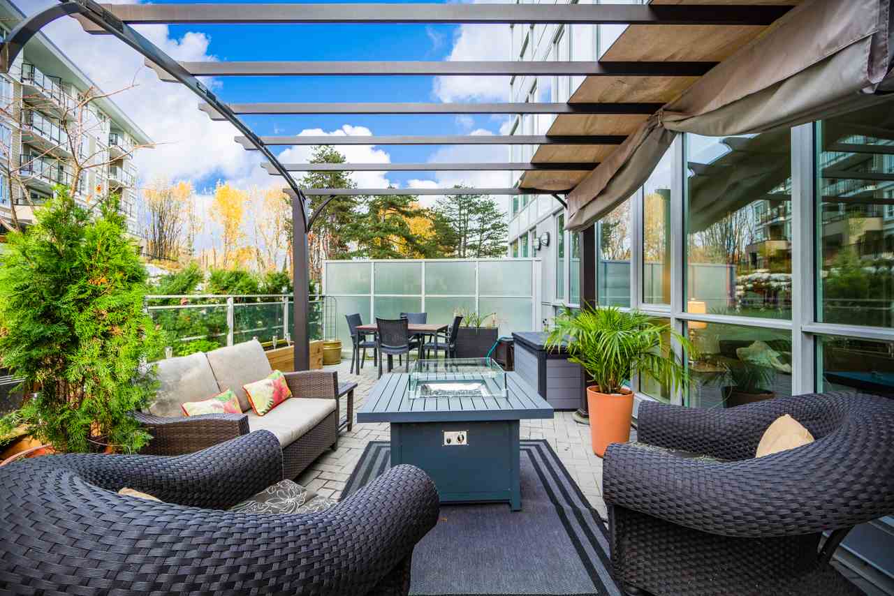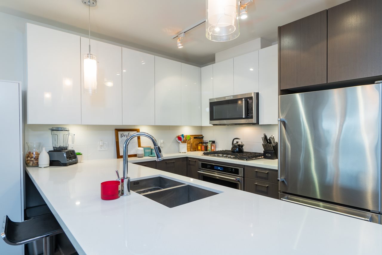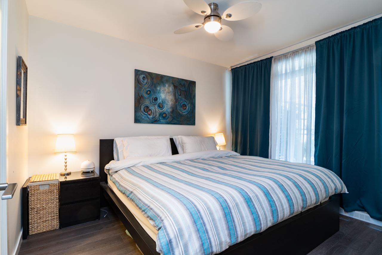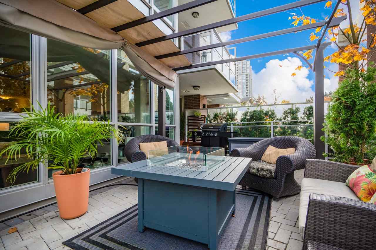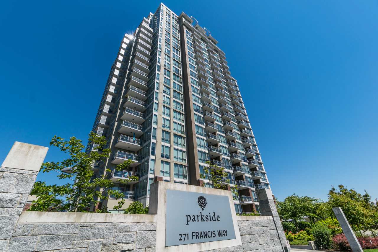 Gorgeous 2 years old 2 bedroom, 2 baths, suite with HUGE private patio and your own fireplace. kitchen with quartz counters, stainless steel appliances, gas cook top; 2 side by side parking stalls, high-end tile and laminate floors, spa-like bathrooms & Mstr bdrm with heated floors. Building well maintained & managed with excellent gym, outdoor pool & swirl pool, theater and social room & lots of visitor's parking. Pets and rental OK. Walking distance to bus station, queen's park, shopping center.