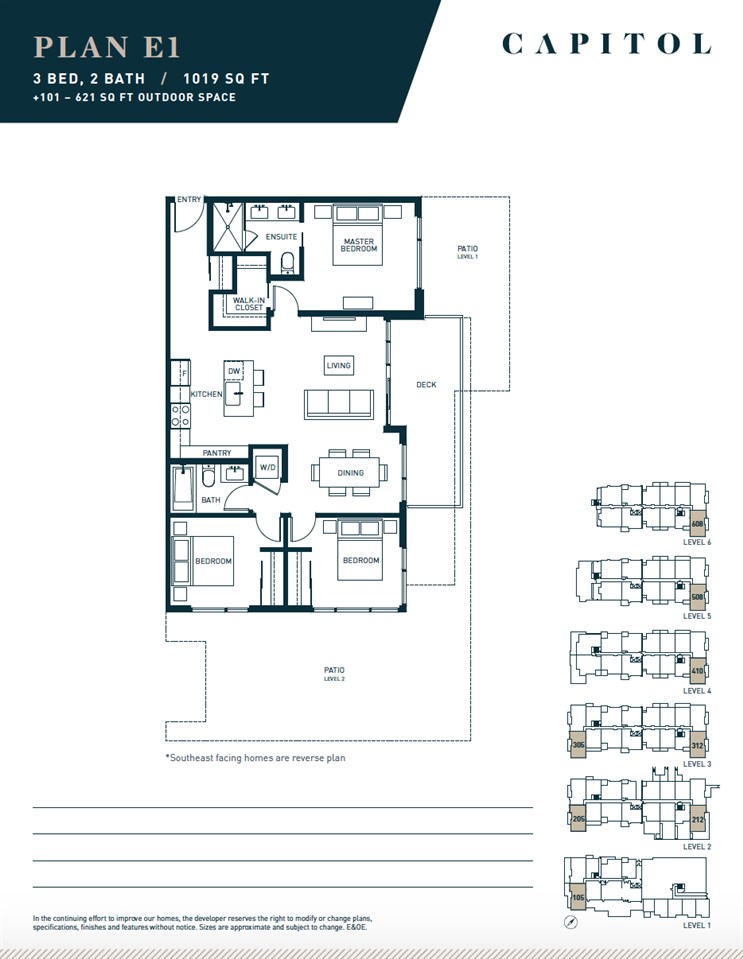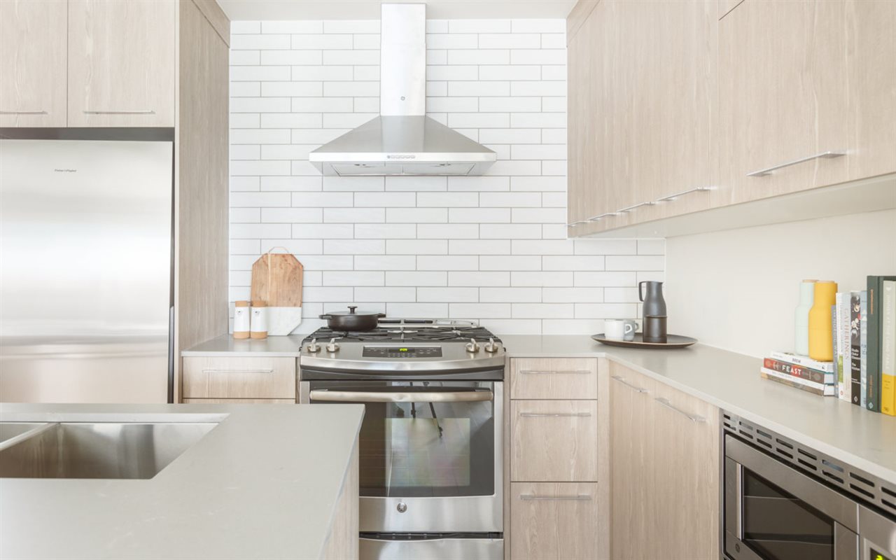 This corner 3 bedroom, 2 bathroom home of 1019 sq.ft. features an open concept layout with 9' ceilings, walk in closets, wide plan laminate flooring. The gourmet kitchen, is completed with sleek caesar stone countertops, porcelain tile in bathrooms, and full size appliances. This unit comes with a rare tandem parking stall which fits 2 cars. Located in a central location, with the best value for the price!
