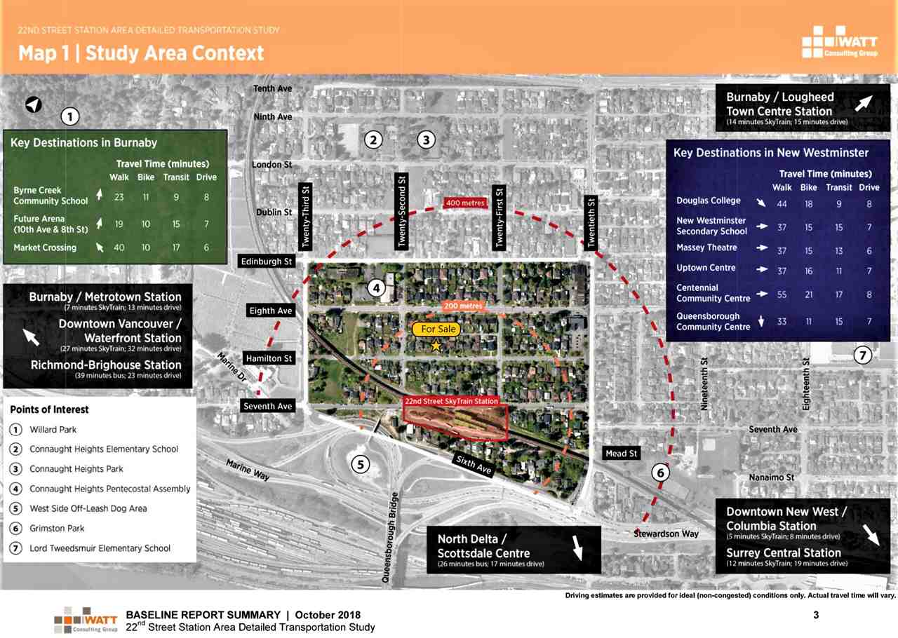 INVESTORS & BUILDERS! Potential Re-Zoning to RT (Townhouses/ Infill Rowhouses) proposed in New Westminster 22nd St Station Area OCP (see City website). 3 bed house on peaceful tree lined street. 49.97 x 111.98 ft lot, double garage, back lane. Possible views with more levels (Rebuild now or hold for future potential OCP approval). Huge 5 ft high crawl space with heating systems & storage. Great location - close to bus and 22nd St Skytrain Station, minutes to Burnaby. Skytrain - 7 min to Metrotown, 12 min to Surrey Station, 27 min to Downtown Vancouver. Walk to Connaught Heights Elementary without crossing busy roads. Easy access to shopping at the Quay, Royal City Centre, Queensborough Landing and Columbia Square Plaza. Open House Sat Nov 24th 1:30-3pm.