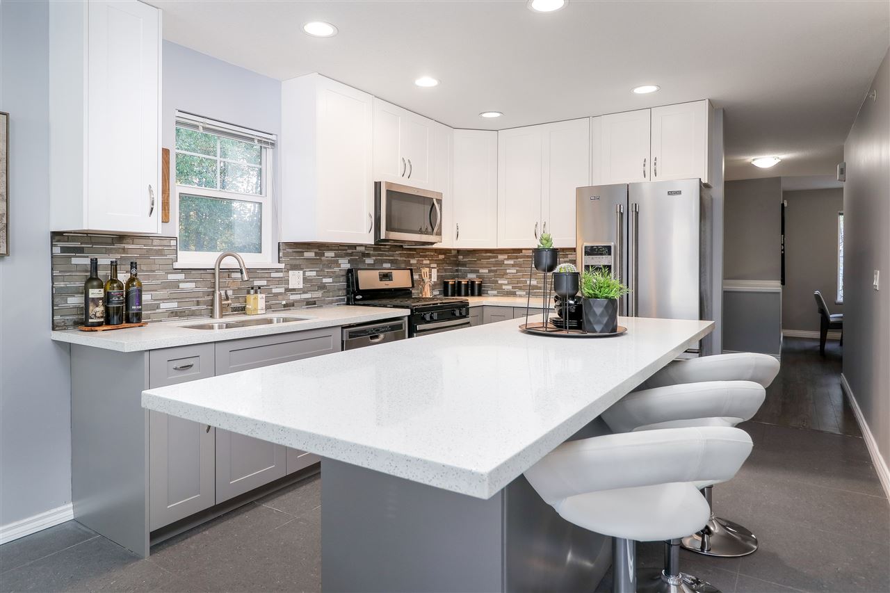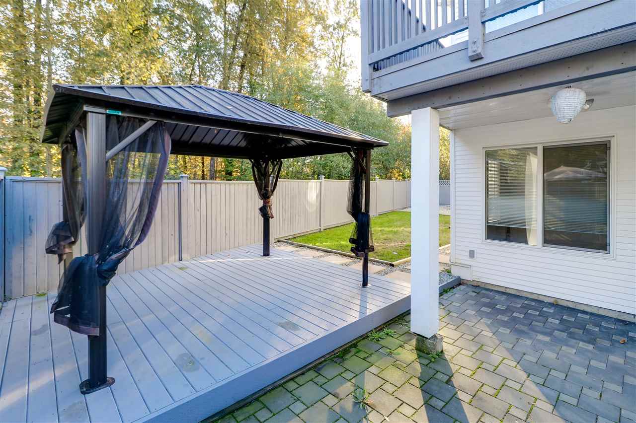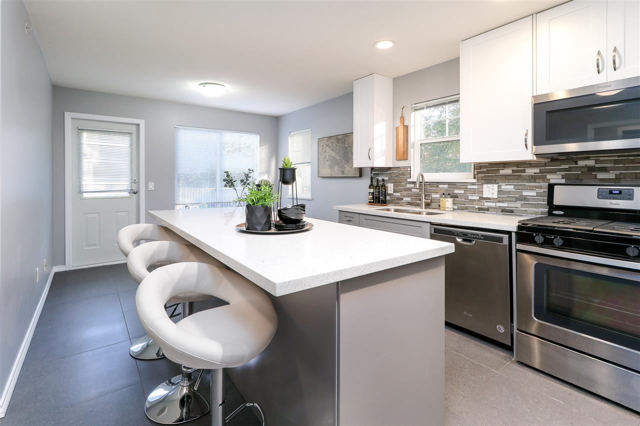 Welcome to River Bend! Corner Lot, Private, freshly painted inside and backyard fence, 2 built in decks, one covered by a Gazebo plus a great sized patio off the kitchen, newer laminate flooring on the main floor, freshly washed carpet downstairs, tile, quartz counter tops and 1 year new appliances in the newly renovated kitchen all sitting right beside access to the Coquitlam River and it's trail...MOVE IN READY for your convenience! Kitchen has an eating area, an extended 8' island which seats 6 comfortably, plus a Dining room just down the way. Beautiful Stone work and shelves in living room and a bonus Shed in the backyard. BONUS: $10,000 BUYER DECORATING ALLOWANCE!!! Open House Sunday Dec. 1 from 12-2pm