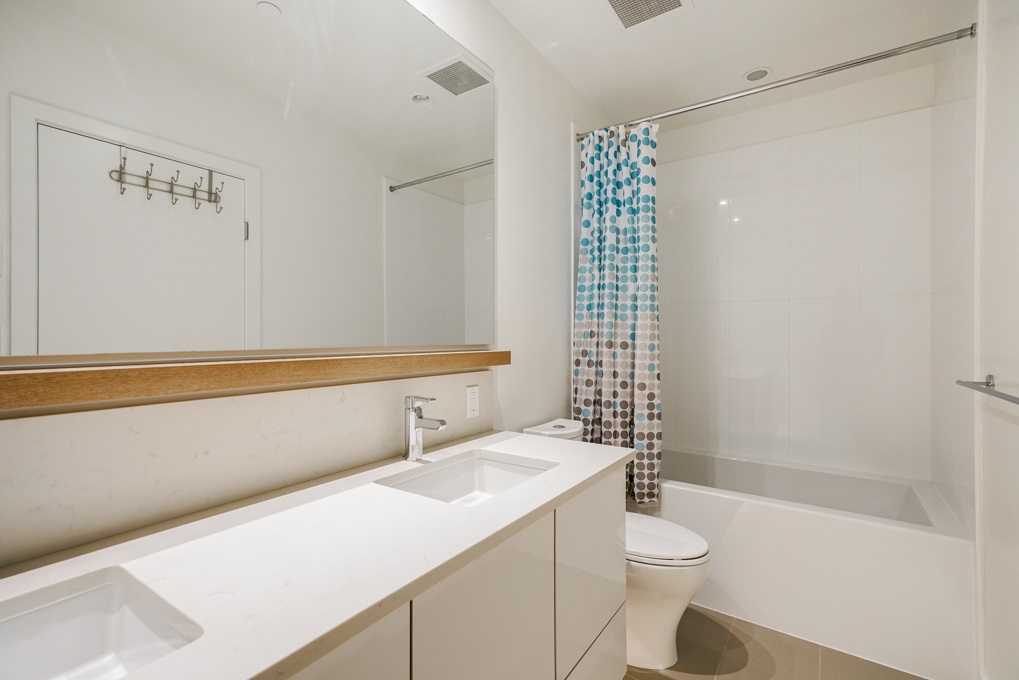 The Sapperton, the first of four residential towers is located in the vibrant Brewery district. This 3 bed 3 FULL bath (both upstairs bedrooms have ensuites) has a private entrance, large patio, 2 parking & a storage locker. Enjoy your luxurious kitchen with 5 full size appliances, including a 5 burner gas stove, under-mounted sink, quartz countertops & recessed lighting. Enjoy the 10,000 sq ft Multi storey amenity centre that offers a gym, squash court, yoga/dance studio, sauna & steam room. Marvel at the views from the huge common rooftop terrace for all your entertaining needs – bbq, fireplace, dining & lounge areas. Ideal location with shops, cafes & restaurants and hospital at your doorstep & the Sapperton Skytrain only 250 meters away. OPEN HOUSE SUNDAY NOV 25 1-3PM