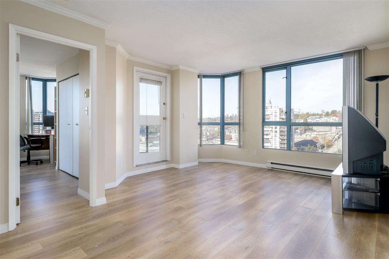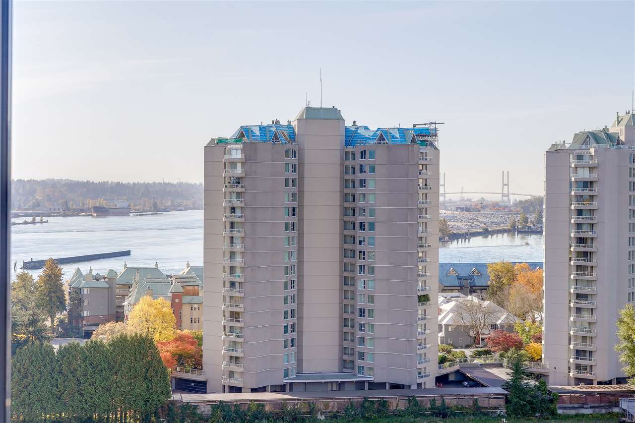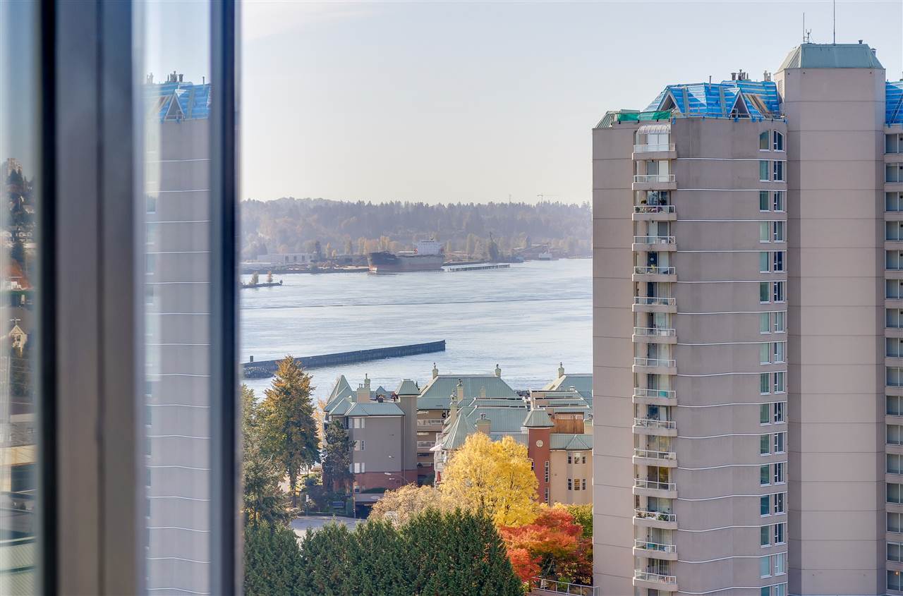 Don't miss this great opportunity to own this new renovated corner view home with 2 bedrooms, 2 bathrooms and 2 parking lots. Great functional layout with waterfront and city view, located in downtown New Westminster. Everything is at your door step; New West Sky Train, Douglas College, Movie theatre, Safeway, New West Quay and so much more. New renovation for the floor, walls and bathrooms in 2018. Also the refrigerator, oven and dishwasher are brand new. This well managed building already finished re-piping in 2016, exterior was caulked & painted and balcony updated in 2012. Rental and pets are welcome. Great for first time home buyers and investment. MUST SEE!!! Open House: Dec 8 (Sat) 2-4 pm