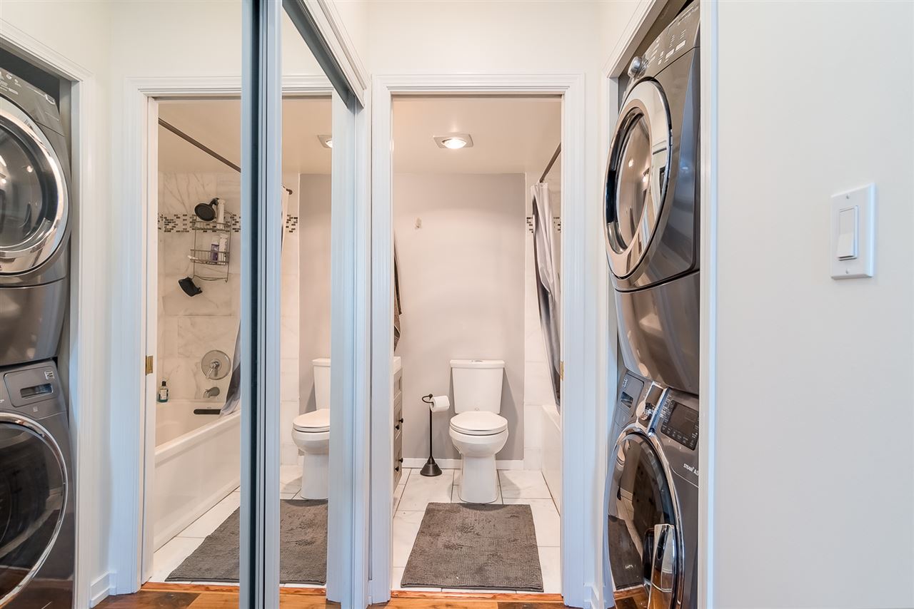 SPACIOUS QUAY CONDO | 1 BED + DEN & 2 BATH | 934 SQ/FT | Right in the heart of the New West Quay, you can't ask for a better location! Within walking distance to skytrain, shopping, restaurants, entertainment & more, this renovated beauty has it all! This home features beautiful walnut hardwood floors, updated kitchen & bathrooms as well as large South facing windows, bringing in a ton of natural light. Includes LARGE den, currently being used as a bedroom/living room, with beautiful views of the gardens below. Very well maintained building with a ton of amenities: full gym, swimming pool, hot tub/whirlpool, and sauna. Call today to book your viewing!
