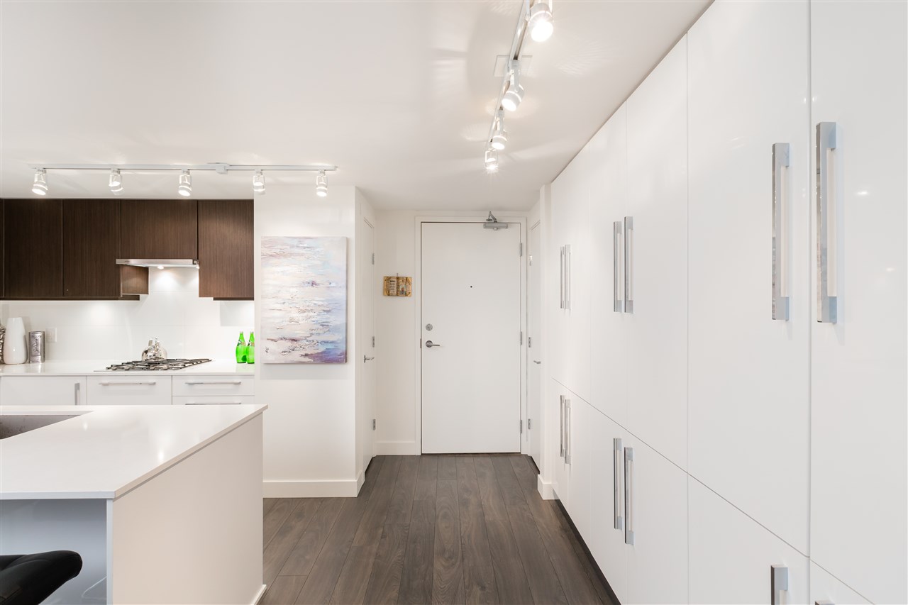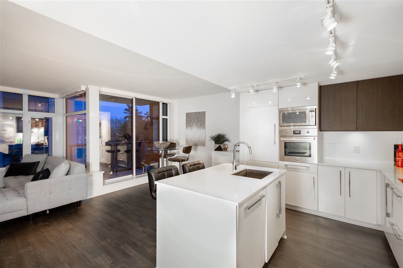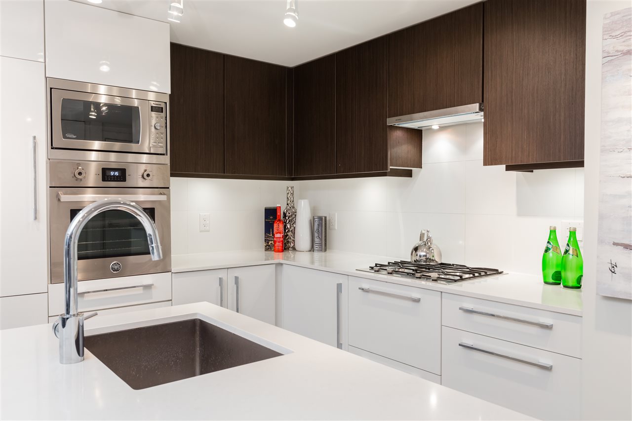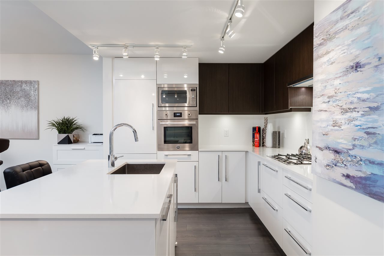 SLEEK & MODERN 1 Bedroom home in the highly desirable Elliott building, located in historic Downtown New Westminster and just a short walk to Columbia Skytrain Station. Clean and contemporary fixtures including quality cabinets, wide-plank laminate flooring and quartz counters. This bright & open concept floorplan features a spacious kitchen with built-in pantry and is equipped with top-of-the-line appliances (including wall oven), gas cook-top and in-suite laundry. Huge BALCONY is perfect for entertaining. Walking distance to Coffee Shops & Restaurants, parks and schools. Include: One Parking Stall and one Storage Locker. OPEN HOUSE NOV 24th 12:00-2:00pm & NOV 25th 10:00-12:00 pm Must check back for VIRTUAL TOUR!