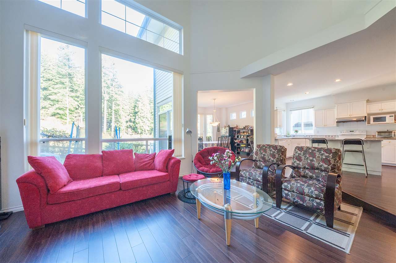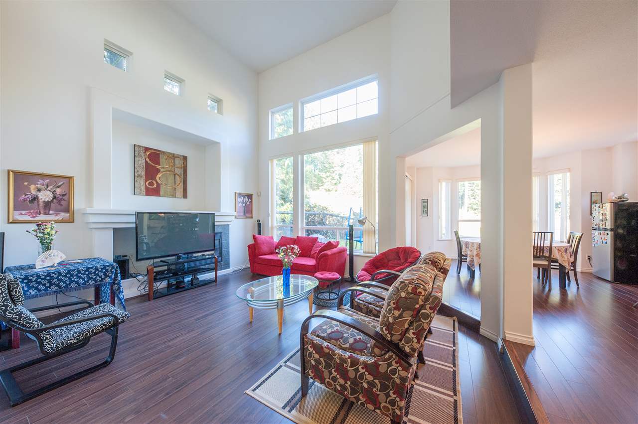 One of the best locations in Westwood Plateau - Chartwell Green. Beautiful views of golf green with trees and pond in backyard with private deck overlooking. 20' high ceiling living room. Engineered hardwood floor. 3 perfect size bedrooms upstairs. Basement is fully finished with recreation room, one bedroom and storage room. Very clean, bright & well maintained house. Must see. Don't miss out.