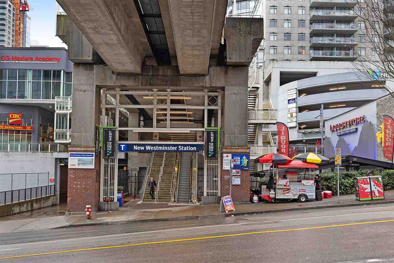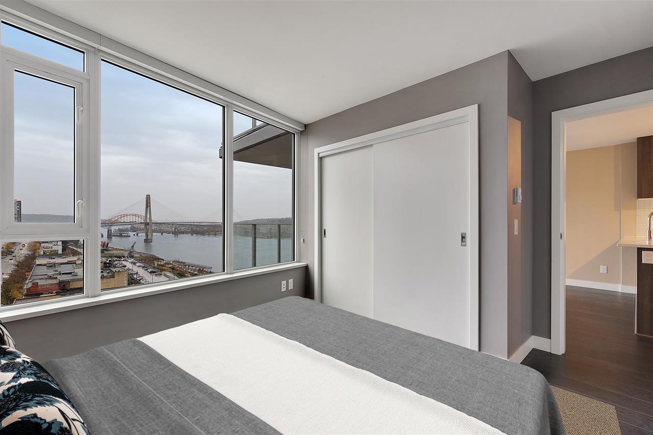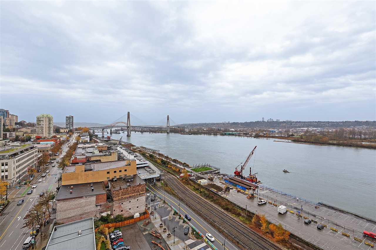 Welcome to Trapp + Holbrook, where historic meets modern. This prestigious building is located in the heart of the action in exciting New Westminster just steps to the finest restaurants, shops, and bars. One bedroom apartment with brilliantly laid out floor plan, and all of the interior upgrades one would come to expect from a builder such as Salient. Solid wood doors, full sized high efficiency washer/dryer, top of the line appliances and oversized sink truly bring a sense of luxury to this space. Soaring above it all on the 18th floor sit and watch the sunset under the bridges or watch the tug boats putter by. We are open for business book your private showing today. OPEN HOUSE This sunday Dec 9th 2-4pm.