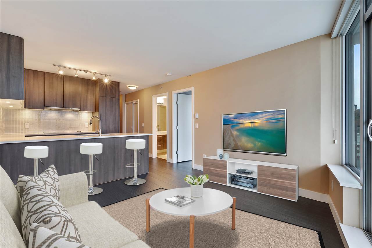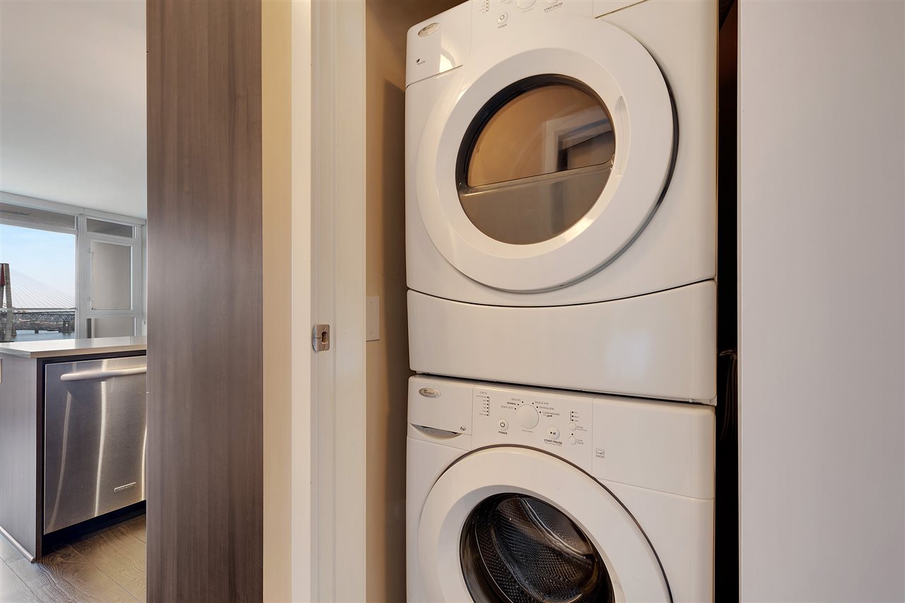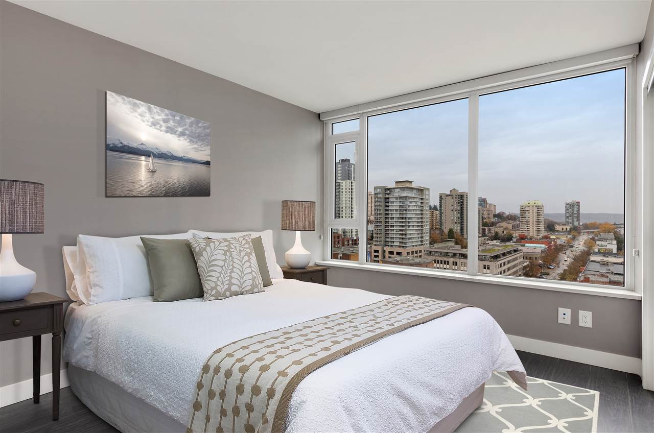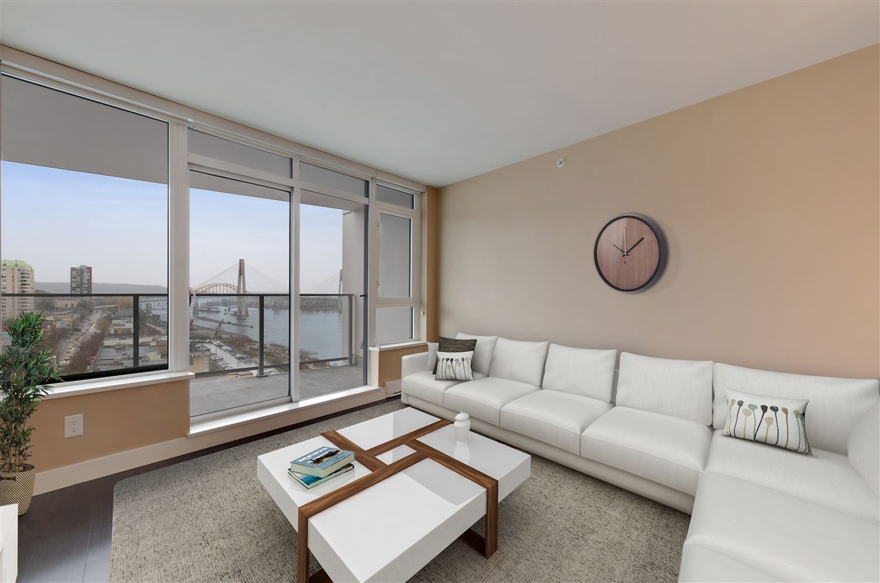 Welcome to Trapp + Holbrook, where historic meets modern. This prestigious building is located in the heart of the action in exciting New Westminster just steps to the finest restaurants, shops, and bars. One bedroom apartment with brilliantly laid out floor plan, and all of the interior upgrades one would come to expect from a builder such as Salient. Solid wood doors, full sized high efficiency washer/dryer, top of the line appliances and oversized sink truly bring a sense of luxury to this space. Soaring above it all on the 18th floor sit and watch the sunset under the bridges or watch the tug boats putter by. We are open for business book your private showing today. OPEN HOUSE This sunday Dec 9th 2-4pm.