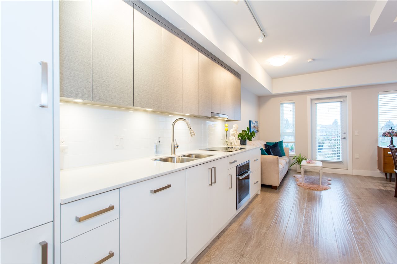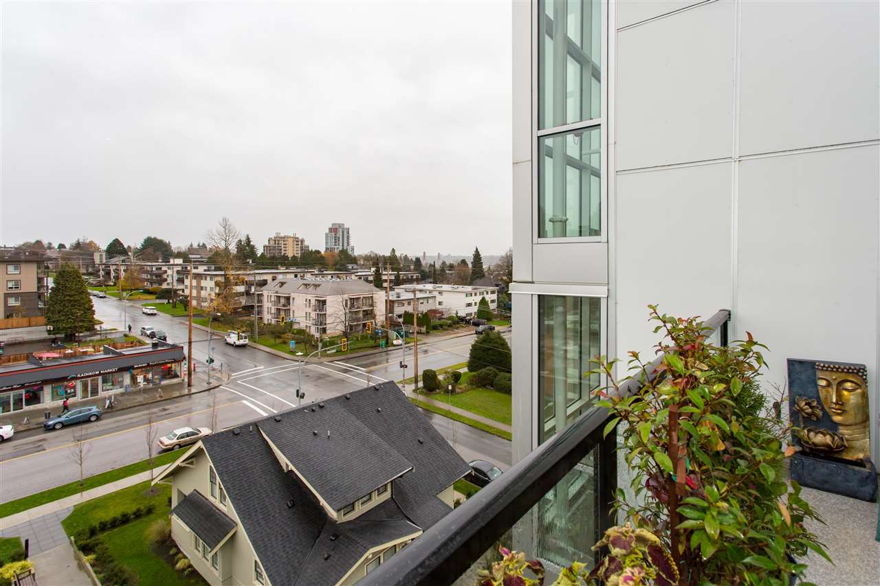 Welcome to LOTUS! Located in uptown in New Westminster, this top floor unit has beautiful NE views of the mountains. Bright and modern, kitchen features include quartz counter tops, and 2 tone cabinets with under mount led lighting. Blomberg custom panelled fridge, GE custom dishwasher and Blomberg washer/dryer. Walking distance to downtown New West, the waterfront Quay, restaurants, shopping and transit. 30 minutes to both YVR Airport and downtown. Unit includes 1 parking and 1 storage, and the unit is also wheelchair accessible. Pet and rental friendly. This is a little gem, won't last! **OPEN HOUSE SAT DEC 8th 2pm-4pm**