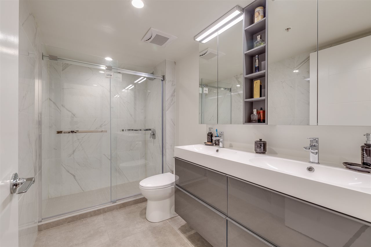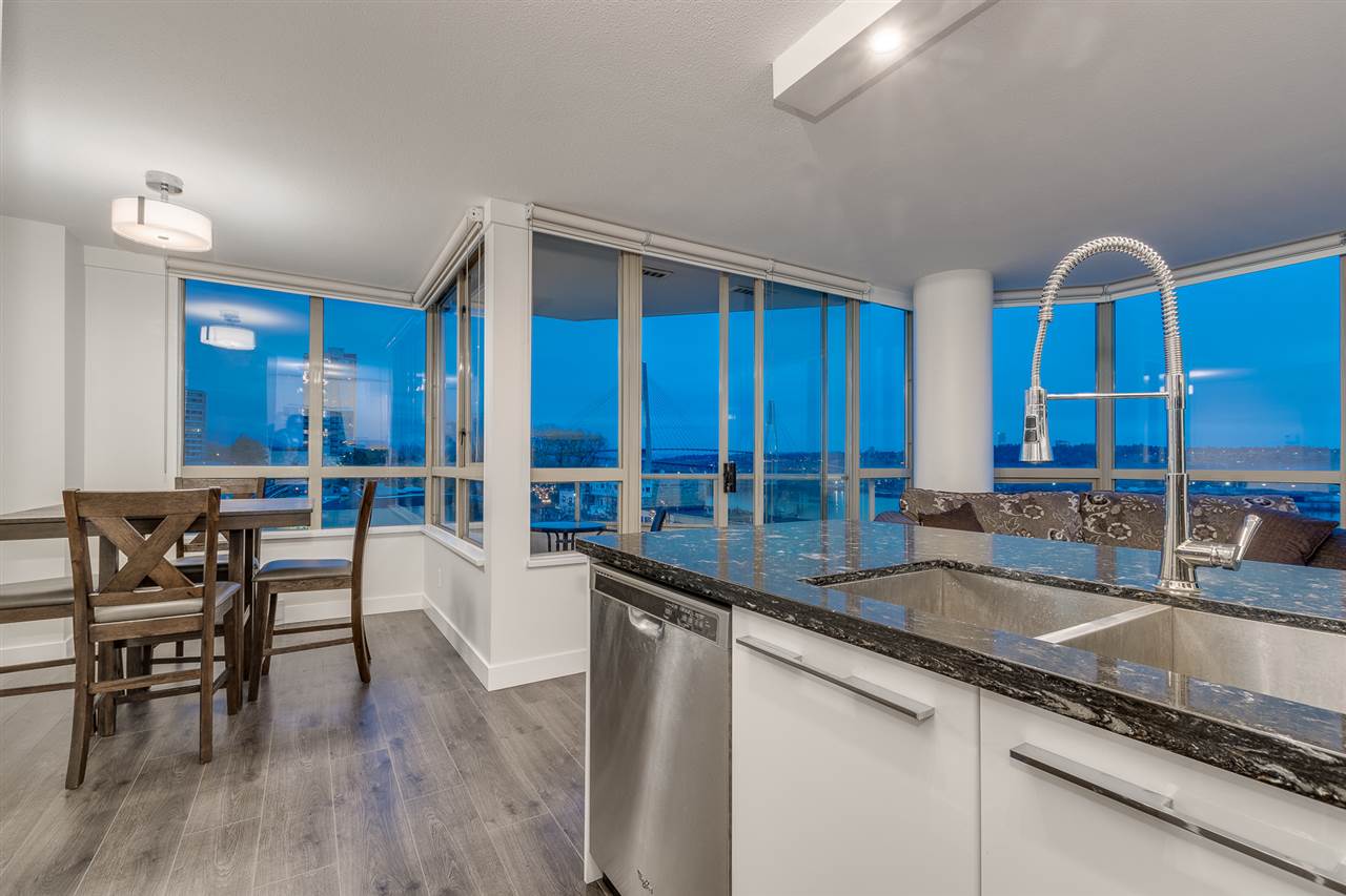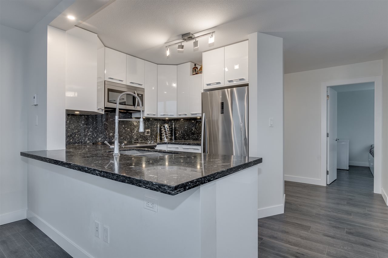 Absolutely gorgeous fully updated 2 bed 2 bath condo boasting close to 1000 sqft of luxury living.This beautiful unit was completely updated this year. Showcasing brand new kitchen with gloss quartz countertops, new stainless-steel appliances, cooktop oven with hoodfan, BI microwave, dual sink,and new cabinets. Opens to living room with wrap around windows featuring jaw dropping views of the Fraser river! Step outside to your private patio and enjoy your coffee with views that are truly stunning. Master bedroom features functional custom built-in closet and 4-piece ensuite. Home features laminate flooring,insuite laundry, amazing washrooms with quartz counters and tile floors. Includes 1 parking & 1 locker. Access to gym, sauna and hot tub.Close to schools, recreation, and rec.