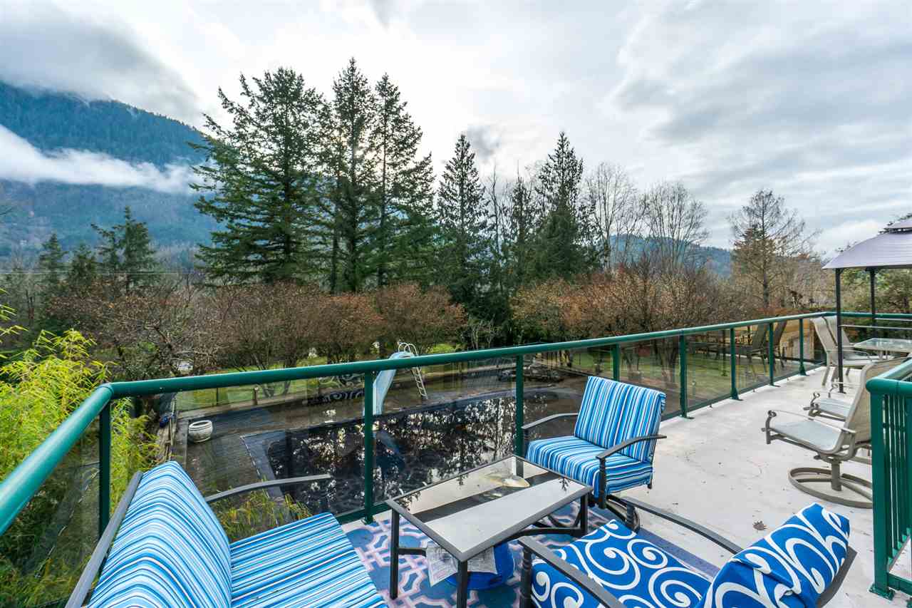 Executive private living on 1/2 an acre in the Chilliwack River Valley 5 mins from Garrison Crossing! This 4,420 sq ft entertainer's delight features a large gourmet kitchen & 2nd butler's kitchen w/ high-end appliances in both (4 ovens & 2 dishwashers!), 4 beds / 4 baths, an elegant dining room & 2 separate living rooms, 4 fireplaces, not to mention a custom bar, billiards room, media room AND a gym room! Outside is a TRIPLE car garage with a driveway that fits an addt'l 12 CARS! Landscaped fully fenced yard with an in-ground heated pool (w/ new furnace, liner, and concrete), hot tub, huge patio area and deck. Enjoy the AIC during summer & the STUNNING mountain views year round.