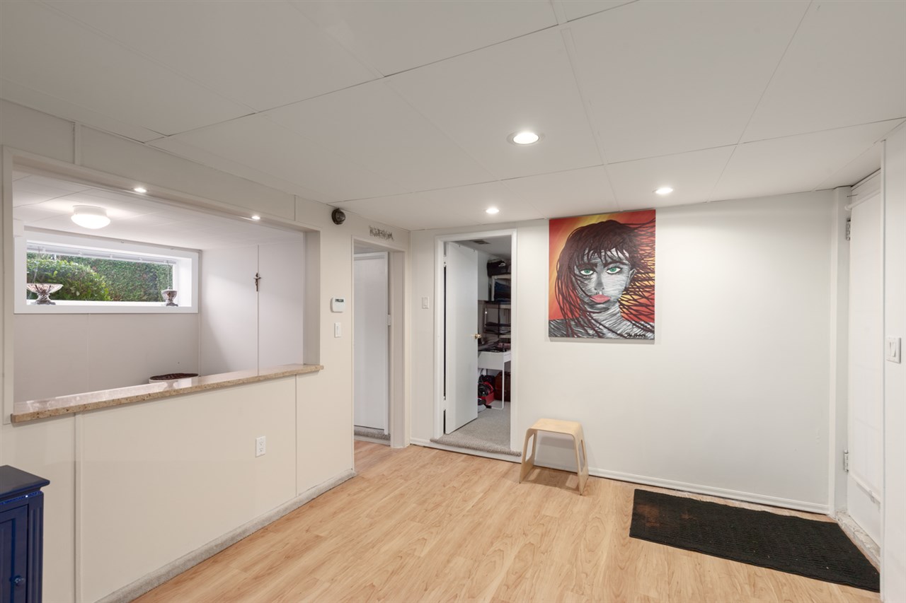 Fantastic 5 bdrm & 3 bthrm home! Featuring a stunning reno'd kitchen, S/S appliances, incl. gas range, granite counters, vaulted ceilings, electric fireplace, eating area plus direct access to the deck. The deck is additional living space featuring a lovely entertainment area, heater, hot tub, firepit & gas fireplace. Hardwood flooring throughout this home, plus a lrge mstr bdrm that has a renovated ensuite, walkin closet plus access to the beautifully landscaped yard & deck. Bonus bright 2 bdrm inlaw suite w/ private entrance & separate rec room-great storage or theatre room. Completely private fenced yard w/ retractable gate & one of most amazing garage/workshop/ "man cave" plus additional RV parking! MUST see!
