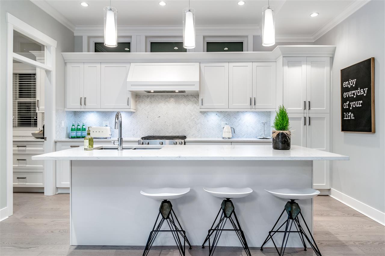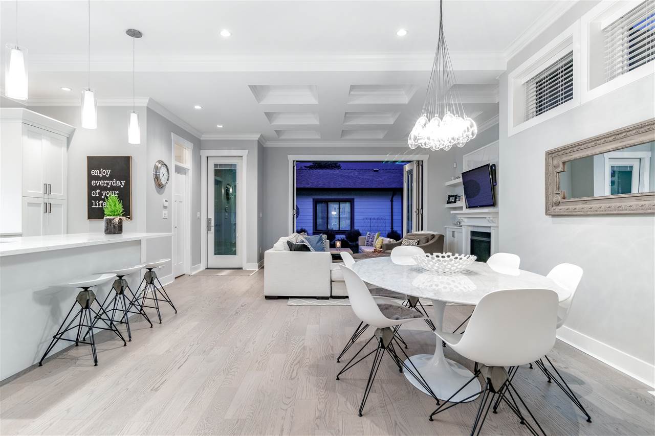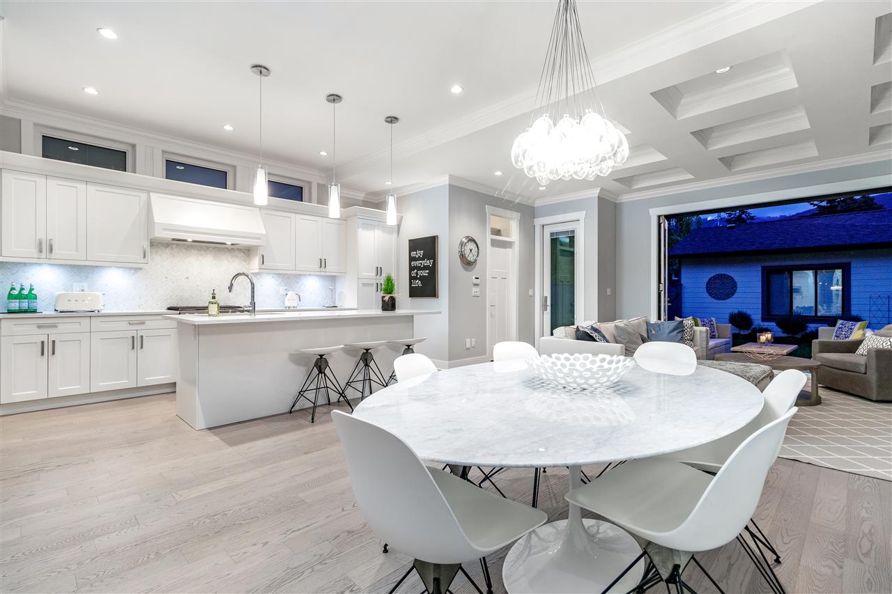 A stunning contemporary Craftsman residence in the heart of one of North Vancouver’s most loved areas. Prepare to fall in love with this expansive, well planned 4015 sqft 6 bedroom, 6 bathroom home (4 beds up plus a legal, self-contained 2 bedroom suite). Featuring the perfect open concept layout for entertaining with an amazing chef kitchen, huge island, gorgeous white stone counters & luxe herringbone backsplash in the kitchen which extends through to the custom butler’s pantry. Space for a large dining room & huge family room, the entire back wall opens up through eclipse doors to a private covered outdoor entertaining space highlighted by outdoor fireplace. Upstairs the master suite is breathtaking with vaulted ceilings and heavenly ensuite. Built by renowned Sivia Construction.