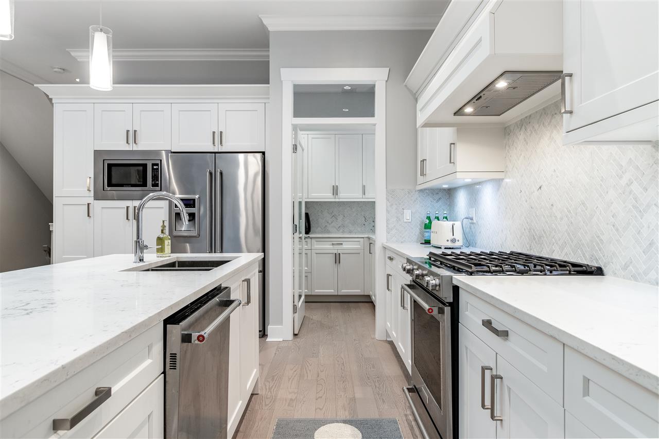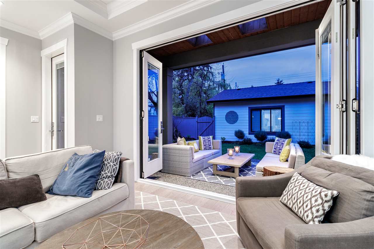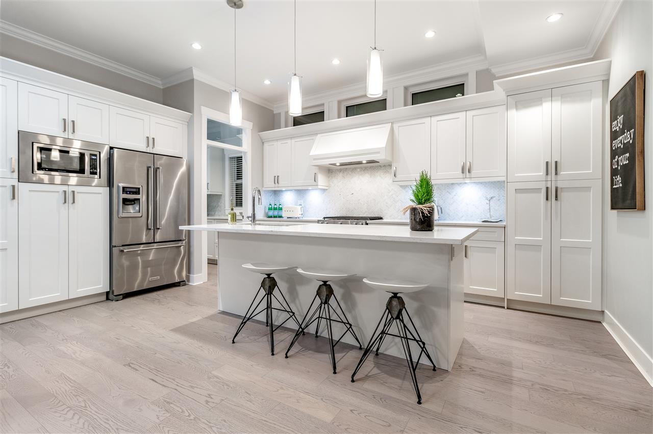 A stunning contemporary Craftsman residence in the heart of one of North Vancouver’s most loved areas. Prepare to fall in love with this expansive, well planned 4015 sqft 6 bedroom, 6 bathroom home (4 beds up plus a legal, self-contained 2 bedroom suite). Featuring the perfect open concept layout for entertaining with an amazing chef kitchen, huge island, gorgeous white stone counters & luxe herringbone backsplash in the kitchen which extends through to the custom butler’s pantry. Space for a large dining room & huge family room, the entire back wall opens up through eclipse doors to a private covered outdoor entertaining space highlighted by outdoor fireplace. Upstairs the master suite is breathtaking with vaulted ceilings and heavenly ensuite. Built by renowned Sivia Construction.