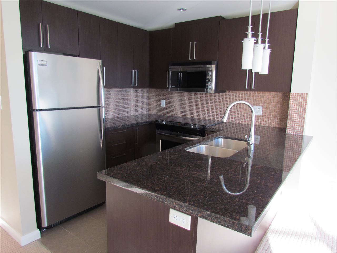 2 bedroom plus a den and 2 full bathrooms, spacious open floor plan with great south exposure and a 148 sqft balcony which is room enough for your barbecue or patio set. Granite counters, stainless steel appliances and wall to wall carpets. This amenities are on the 9th floor which includes a full gym, steam shower, party rooms and a storage locker. The Shopping Mall (approx, 225,000) sqft has great anchor tennats like Safeway, Royal Bank, CIBC, Shoppers Drug Mart, Landmark Theaters, Tim Hortons, Starbucks plus many more and Skytrain is accessed on the 4th floor. The most unique project in North America, live shop and travel from one central spot.