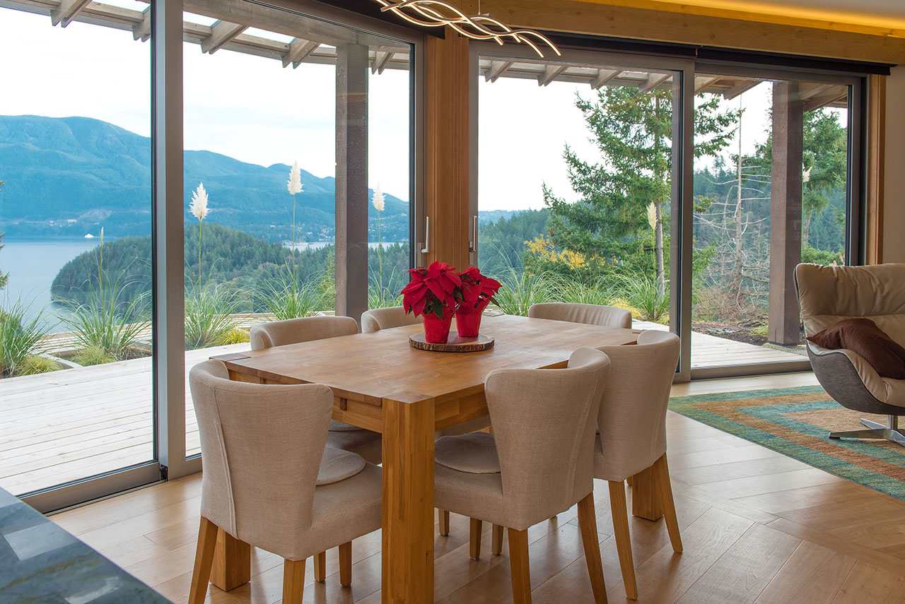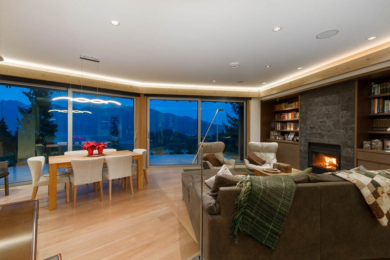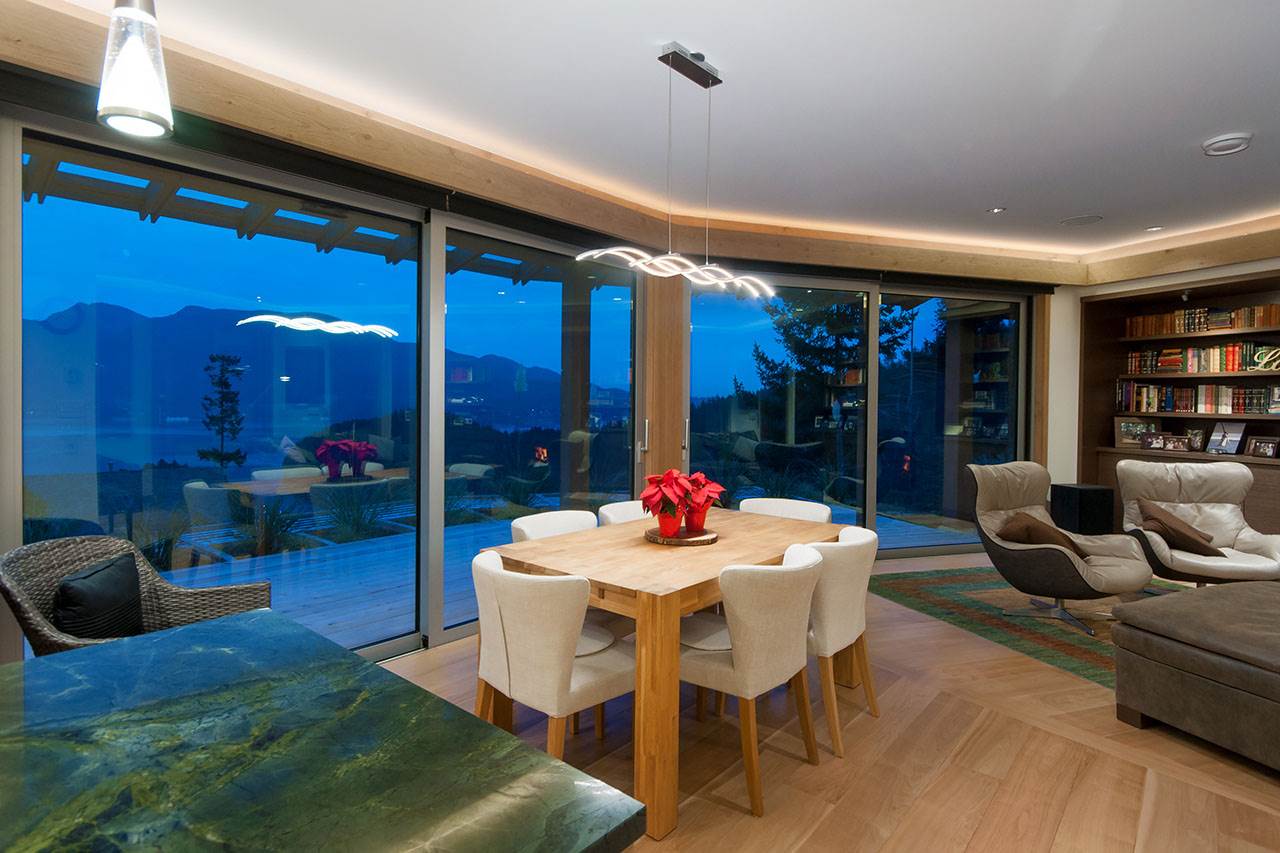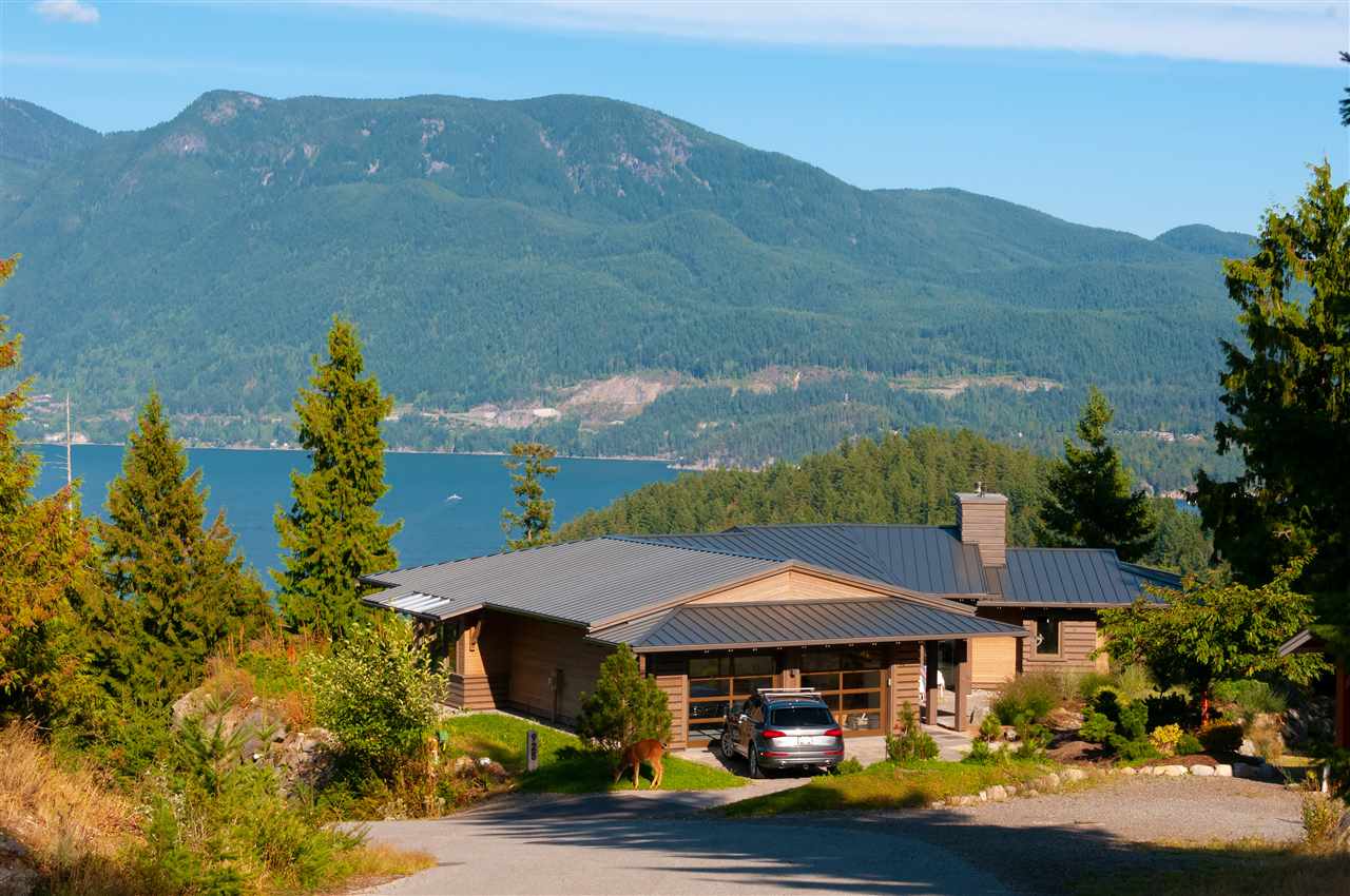 A bright and modern home meticulously designed and built by A.W. Peters & Associates. This luxuriously attractive , solid and enduring home is minutes from the ferry. The expansive view from this unusual corner lot means you never tire of the outlook over Howe Sound, the mountains and surrounding forest. Enjoy the convenience of one level living , where decks and patios expand the living space, spilling out to the outdoors when the wide patio doors are open. Stay cozy and comfortable all year round with low energy use and fresh air provided to each room. Easy living and low maintenance make this the dream home,