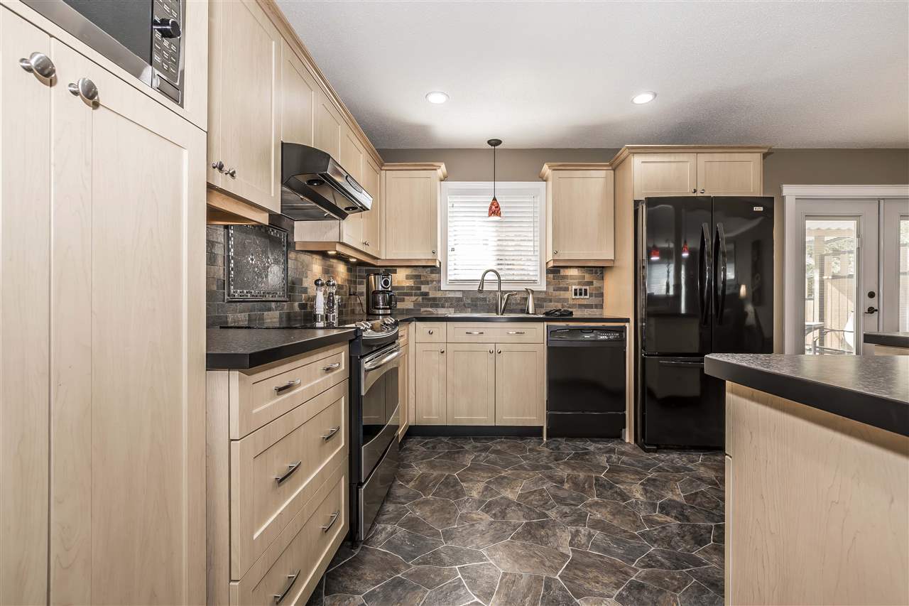 4 Bedroom House and Shop! This home shows a 10 out of 10 throughout! Everything here has been updated over the last few years. 8 year old roof, Newer kitchen with quality appliances and the ever popular 'open plan' with island and eating bar. Fully updated bathrooms, 3 bedrooms up with a 4th down and room to make another bedroom in the huge family/rec room. 2 newer gas fireplaces with stone, engineered hardwood flooring, vinyl windows, 3 year old hot water tank and furnace. 12x28 SHOP with 10 foot door, insulated and wired and heated also a long single garage, Garden shed under the deck, fully fenced yard with perfect landscaping. Triple wide parking. This home is in pristine condition. Very clean. You won't be disappointed.