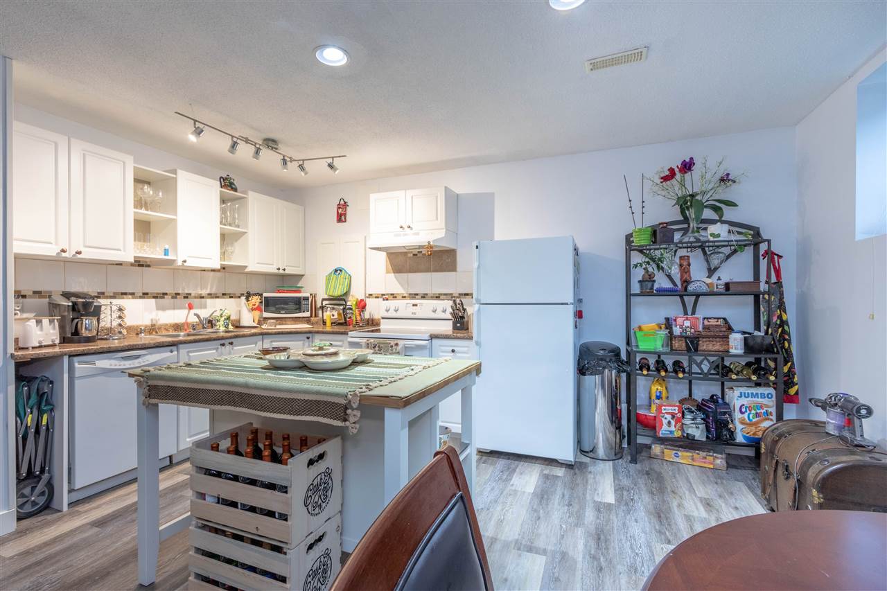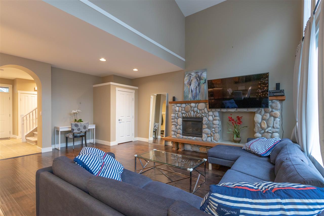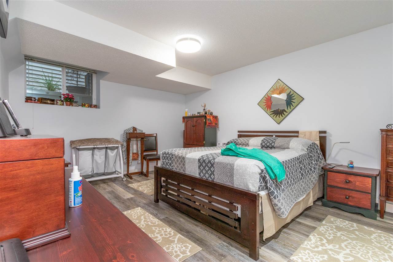 Wow! Ticks all the boxes! Large enough for your whole family, this 2 storey + bsmt home comes with 4 bdrms + den, 3.5 baths, including full bsmt w/ sep entrance and full bath! Main floor features "great room" layout w/ soaring vaulted ceiling in the living rm area, river rock f/p, modern kitchen, and spacious dining area, along with large den or "flex room." 3 bdrms up incl Mbdrm w/ 5 pc ensuite incl soaker tub and sep shower, and 2 big spare bdrms. Bsmt has another bdrm, full bath, and lvg room/rec room. Lots of room for the BBQ outside on the large decks. Laneway access w/ parking in the back. Updates incl flooring, appliances, central A/C. Great family area, close to schools and parks, and only a few minutes to shopping and transportation incl W/C Xpress.