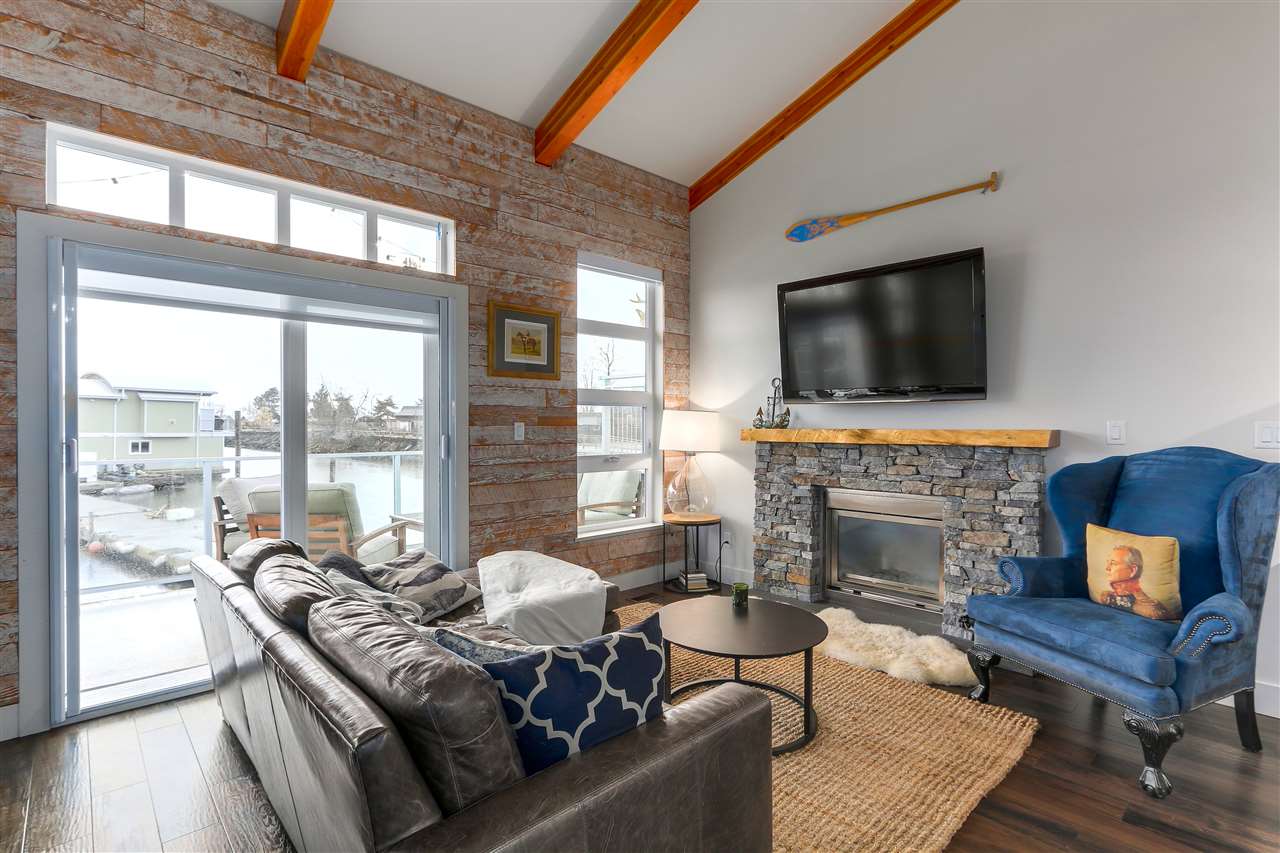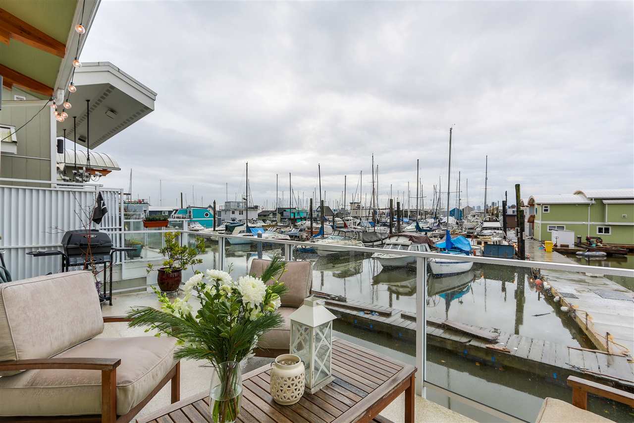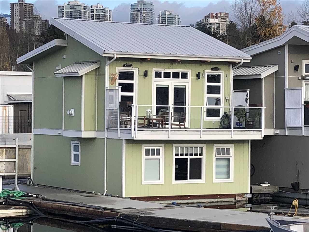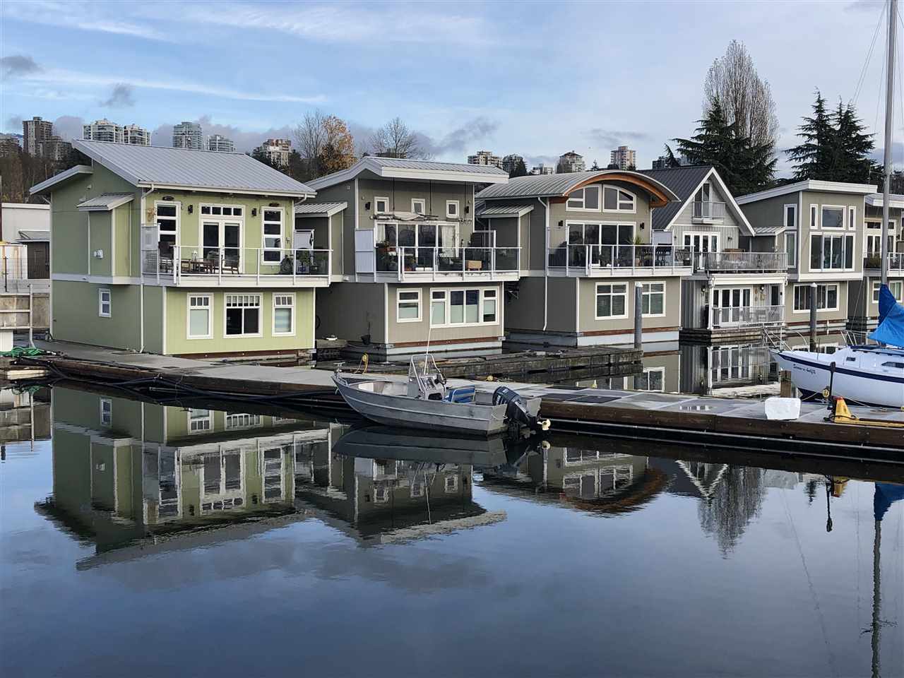 RARELY AVAILABLE Spirit Trail Ocean Home as featured on Houzz for its remarkable style, finishes and features. This open concept 2 bed 2 bath 1164 sq. ft. floating home features vaulted ceilings, contemporary kitchen, high end appliances, quartz counter tops, gas range, fireplace, heated bathroom floors with jetted tub. Enjoy BBQs and spectacular marina views on a sunny south facing 168 sq. ft. deck Built on a 40-ton cement float with 2x6 construction and 50-year metal roof. Enjoy a peaceful lifestyle right on the water all in the heart of the city. Just a 7 min walk to the Lonsdale Quay and Seabus to downtown. Monthly moorage of $964 incudes moorage water, daily pump outs, garbage, recycling, parking and 24-hour video security.