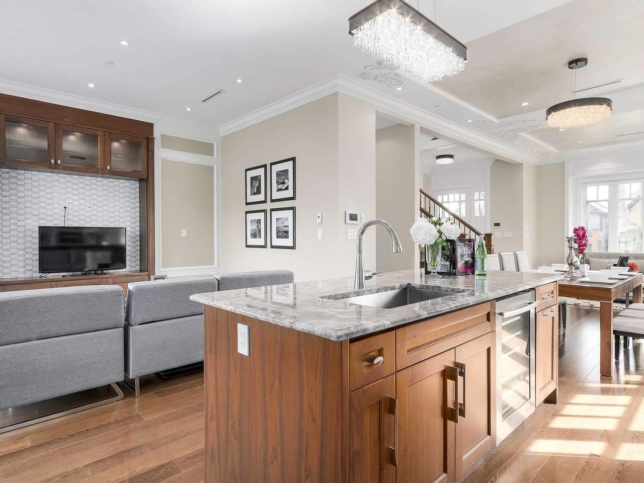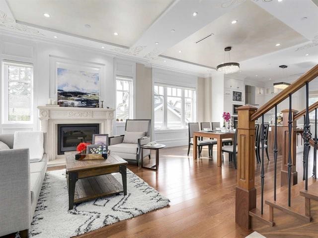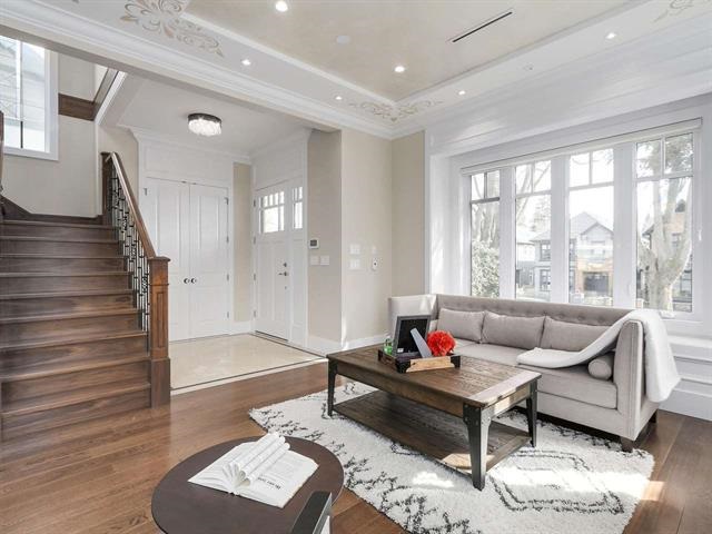 Quality custom built newer house on beautiful 33 x 130.3 corner lot in the heart of prestigious Kerrisdale area. This house offers professionally designed interior with higher ceiling(>10' on main, 9' on upper level), gourmet kitchen and wok kitchen with high-end appliances. A/C. HRV, radiant heating, smart home system, central audio system and many other great features with exceptional attention to details, High ceiling (9') 2 bedroom legal suite with full kitchen and independent laundry in the basement. Convenient transit to UBC, few minutes walk to Crofton and close to St. George's/York House and Kerrisdale Elementary/Point Grey Secondary catchment, Dunbar Community Centre, shopping and recreation nearby.