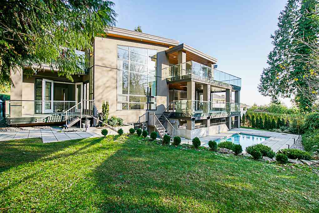 Stunning contemporary south-facing home with ultra luxury meets everyone dream house expectation. 25308 sq ft park-like private estate nestled in the prestigious lower British Properties. Over 8400 sq ft of living space on 3 level. Fully-automated open-concept living with 6 bedrooms, 7.5 bathrooms, and a chef-inspired kitchen and wok kitchen with super thick granite countertops and Sub-Zero & Wolf appliances. Super High Vaulted ceiling with the extensive use of floor to ceiling glass. Have your summer activities on huge private patios and swimming pool. Enjoy yourself in the spacious rec room with a full wet bar, wine room, integrated home theater, private fitness studio and spa. Nearby schools, Golf Club & shopping mall. Must See! Open House: Sat.(Dec. 15) 2 pm-4 pm