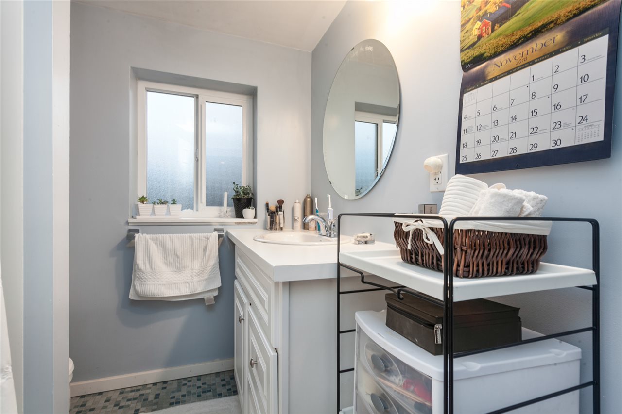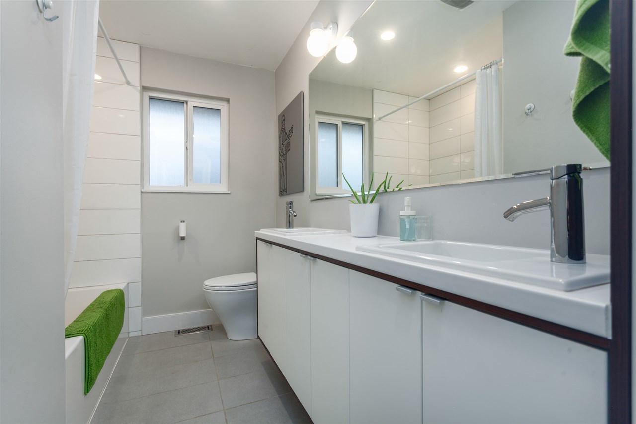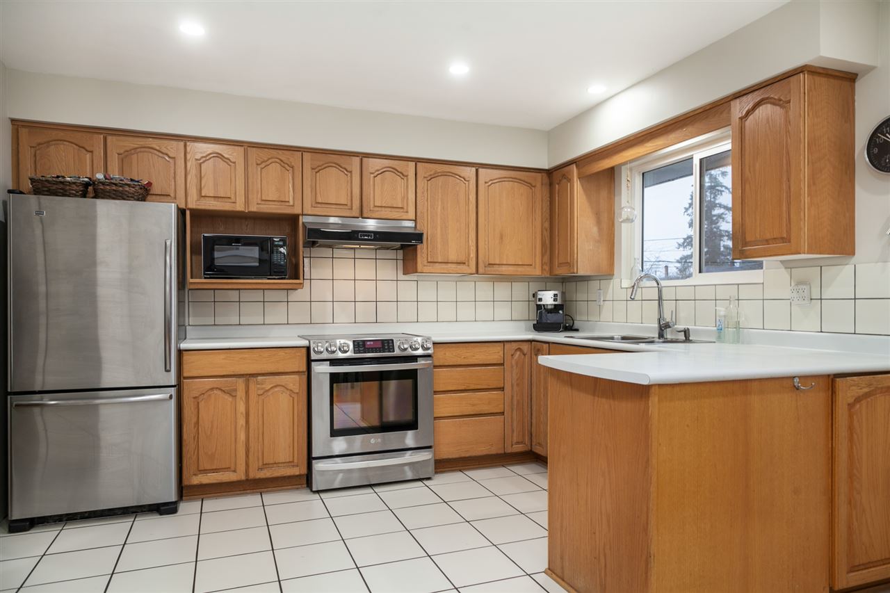 Fantastic family home located on one of Central Lonsdale’s quietest streets. Upstairs, the home features beautiful oak hardwood floors, spacious rooms, updated bathrooms and kitchen with stainless steel appliances, a big living room with a cozy wood burning fireplace, a dining room opening up through new sliding doors to a huge 20' x 20' deck with views of Grouse Mountain, and a new roof. The downstairs offers a large family room and bedroom for the main floor's use with additional space perfectly suited for an inlaw suite. The back offers lane access with plenty of parking and a 2 car garage, a chicken coop, and storage shed. The current zoning allows for a coach house and rental suite while the CNV Duplex Special Study suggests a future potential for a higher value as a duplex lot.