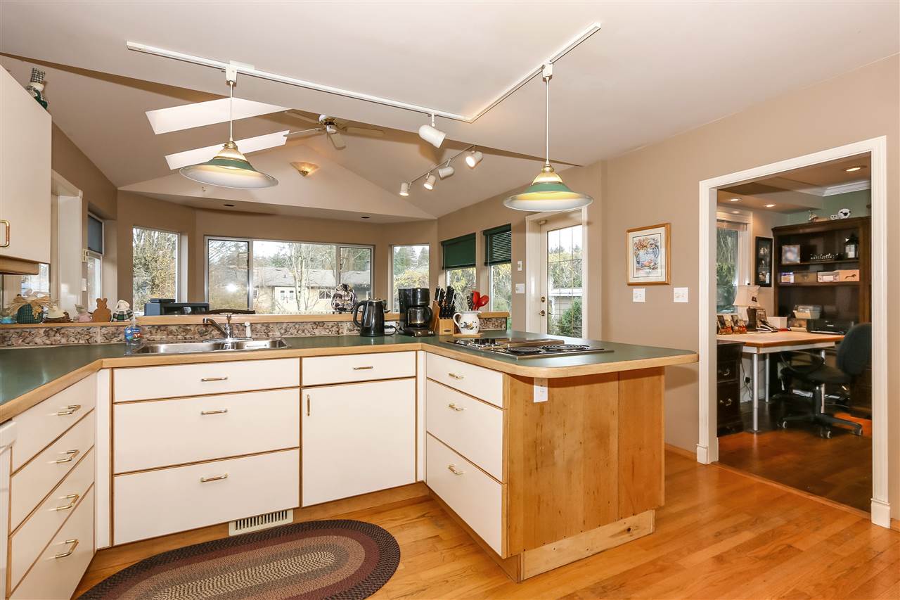 Private home quiet street, w/mountain view, lovingly updtd w/quality materials, ample storage & wrkshp w/sub-panel. Lrg custom kitch w/baking center & incredible cabinet/counter space. Dinrm/sunrm extension w/vaulted ceiling & skylights; frnch drs to lrg dck. Lvgrm feat gas fp w/solid oak mantle & built in 5.1 surround sound. 3 bdrm main lvl incld mbdrm w/access dck, walk-in closet, 2 pc ensuite. Main wshrm fully renovated(2018). Lwr lvl recrm w/granite eating bar & potential for 2nd kitch & suite conversion. Office/storage rm & lrg mudrm/laund area w/ample storage; 3pc wshrm. Beautiful private 3 lvl bckyrd w/lrg patio, pond, & vegetable grdn. Room for rv parking drive, 3 additional car, & single car garage w/storage.