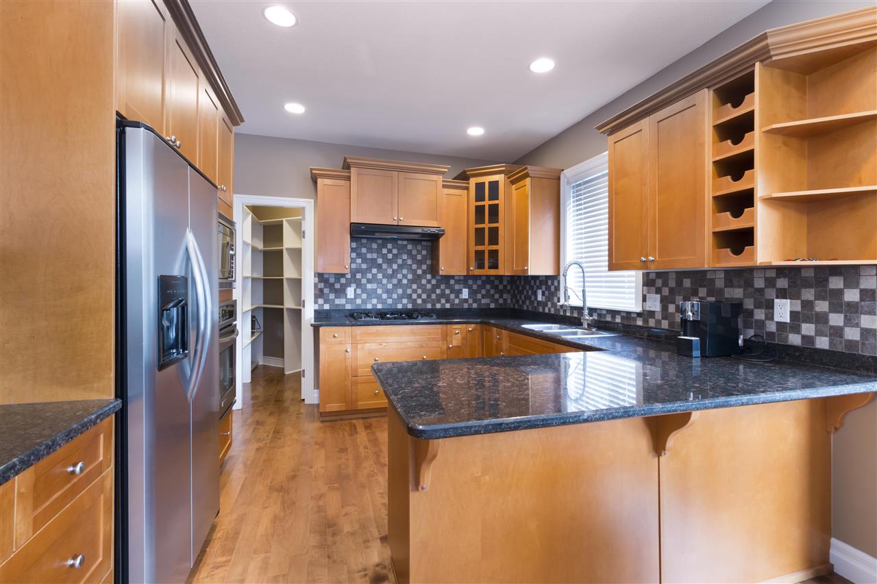 Welcome to this quality built home! This elegant house offers triple garage and flat drive-way that can easily park another 3 cards. Charming living room with vaulted ceiling. Hardwood floors throughout the main level. The kitchen features granite counters, stainless steel appliances, gas cooktop, built-in oven, microwave and walk in pantry. Next to the eating area is the family room with 17' high ceiling and excellent Southeast facing deck. Carpeted upstairs host Master bedroom, Laundry Room and another 3 good size bedrooms. Spacious basement has your Recreation room, Wet Bar, Media room wired for speakers & projector and potential to put in a two bedroom suite with its own separate above the ground entrance. Open House (Dec 9,2018) 2:00-4:00 pm.