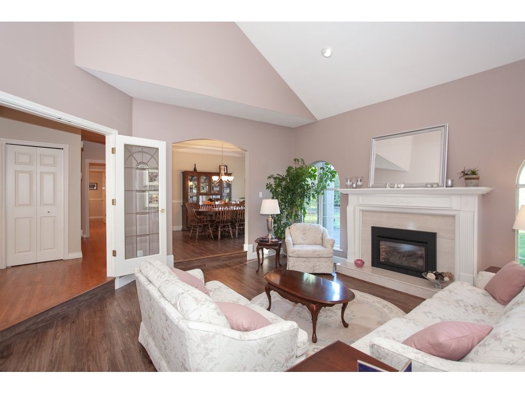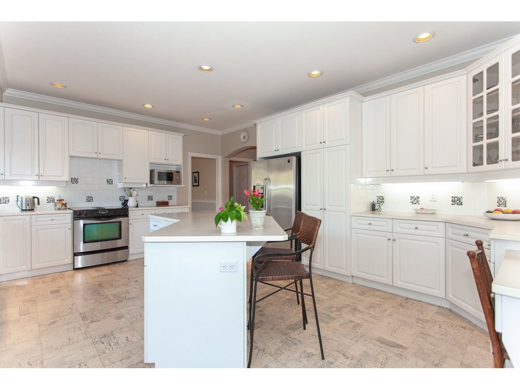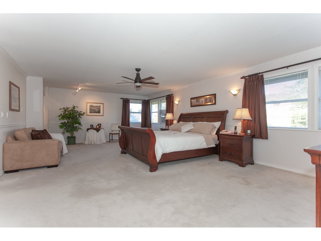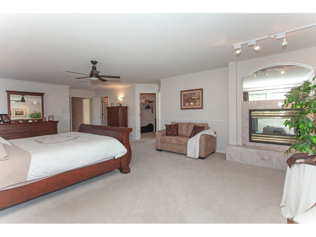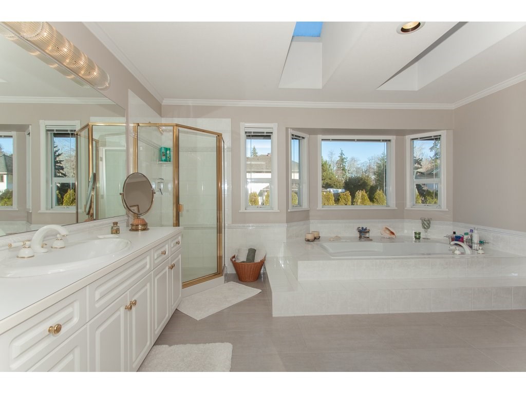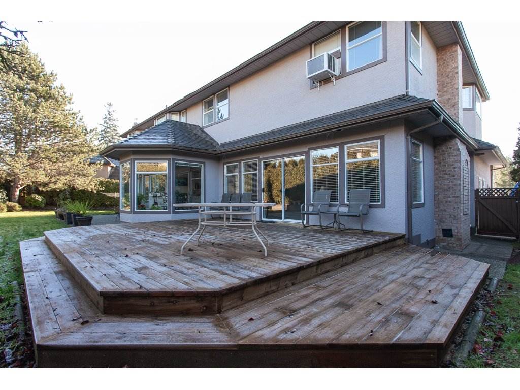 Located in the popular British Manor, this quality built executive home has 9 ft ceilings, gourmet kitchen, large 3 bedrooms upstairs and den on main. Huge master bedroom 16'6 x 27' with a see through double sided fireplace that can be enjoyed from both the master en-suite and bedroom area. Lots of crown molding, hardwood, cork and tile floors, very private 1/2 acre gross density lot, 14 ft. cedars surround yard, over-sized triple garage and RV parking, huge family room on the main floor which opens to a completely private backyard with a massive entertaining 18' x 22' newly built deck. Roof is only 4 years old and many other updates, this is a must see to appreciate.