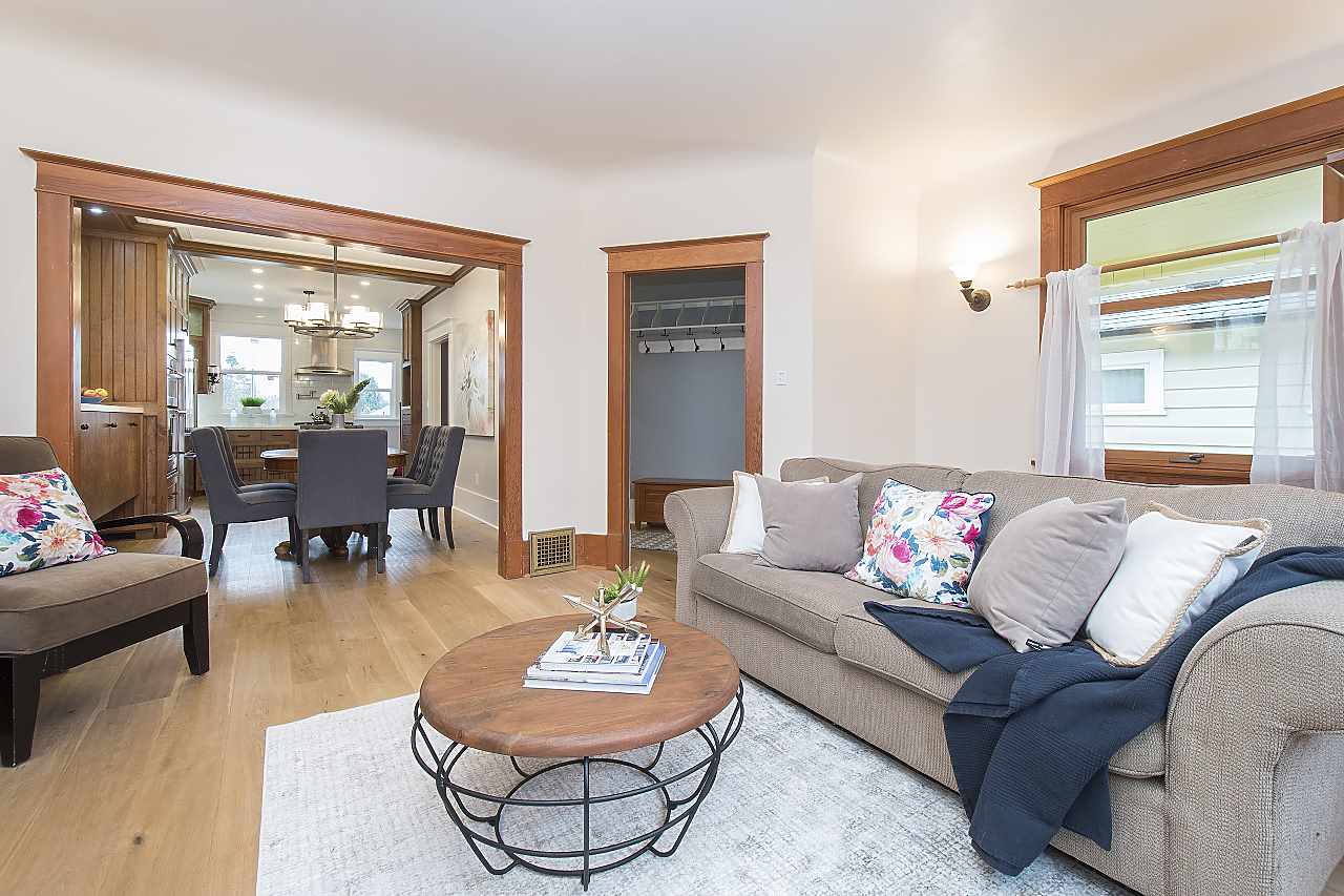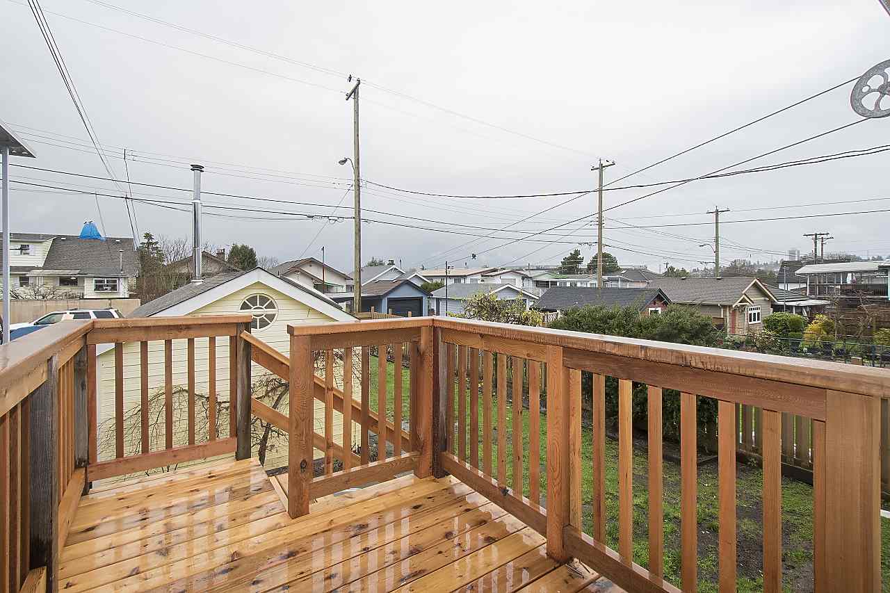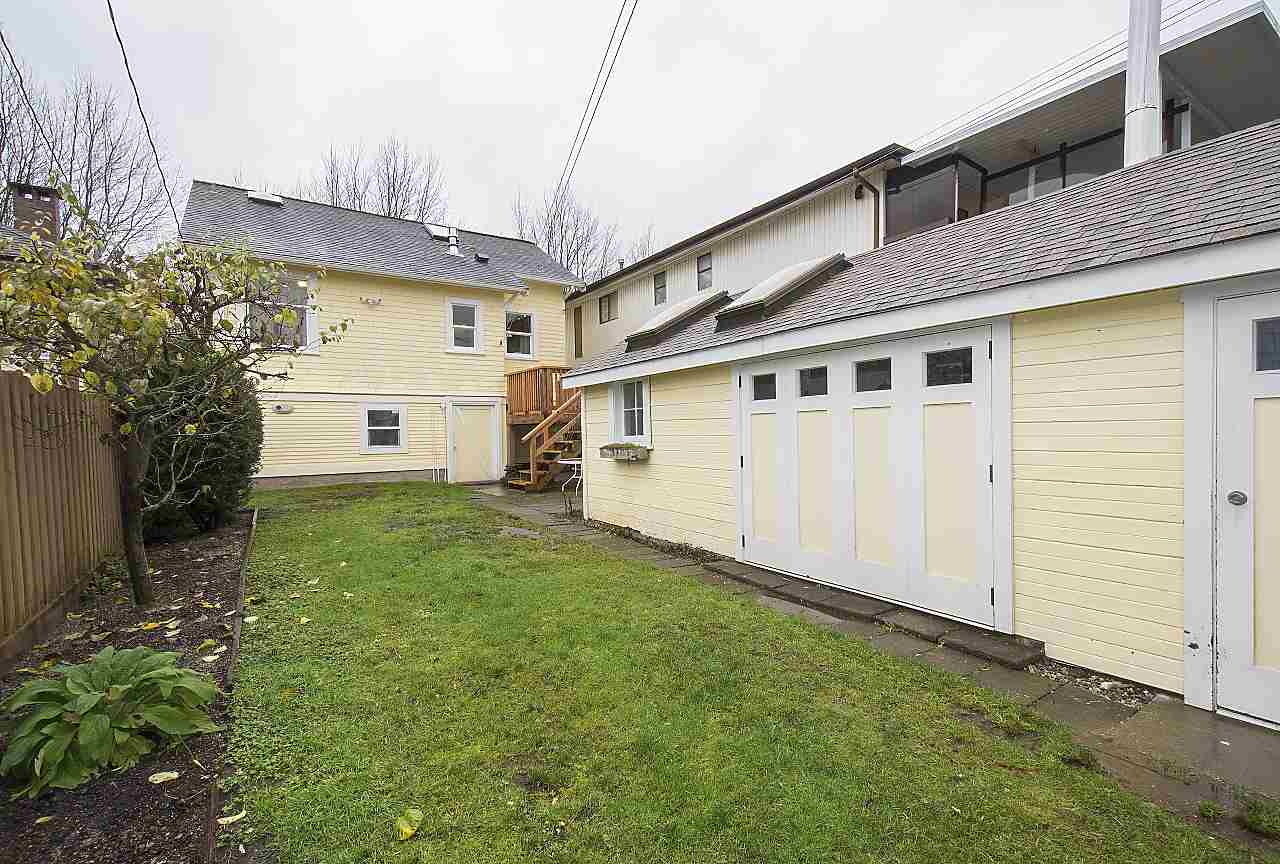 This beautiful family home in on a tree lined street in Hastings Sunrise has both character and style. Features include an amazing custom kitchen with blond walnut cabinets, quartz counter tops, and SS appliances, custom millwork, hardwood floors, skylights, updated bathroom on the main, hot water on demand, new back deck, 1 bedroom legal suite, fenced yard, and garage with workshop/studio space. Located in a mature, quiet neighborhood close to all levels of schools with easy access to downtown, North Shore and Burnaby. Don't miss this one of a kind beauty!