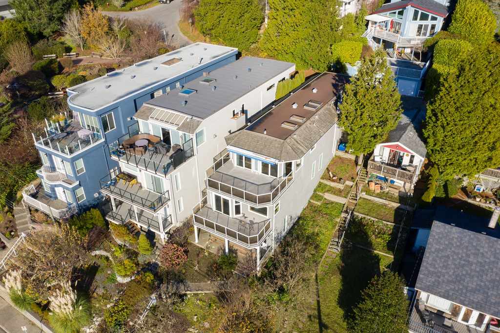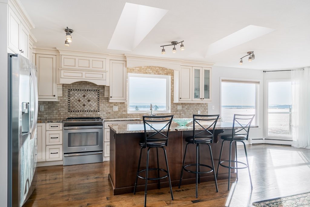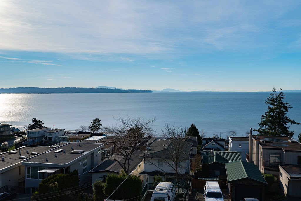 Panoramic ocean views + full Mount Baker views, White Rock Beach lifestyle home. Built by German Builder Dan DeJager Construction. 2500+ sqft home, three storey with lane access for parking. Ocean views from each floor. Spectacular ocean views on top floor & retractable awning on sundeck.Open concept floor plan .New hardwood floors 2018, granite surfaces in kitchen with island that has seating, stainless appliance package, natural gas fireplace, three generous bedrooms w/ walk-in closets, updated bathrooms, two bedrooms en-suited & 3.5 baths in home. Concrete foundation has a walk in 300 sqft storage area. Parking @ carport off the back lane access, that enters at the kitchen level, fits 3 cars. Five minute walk to the shores of White Rock Beach. ** OPEN HOUSE SUNDAY DEC 9TH 2-4 PM **