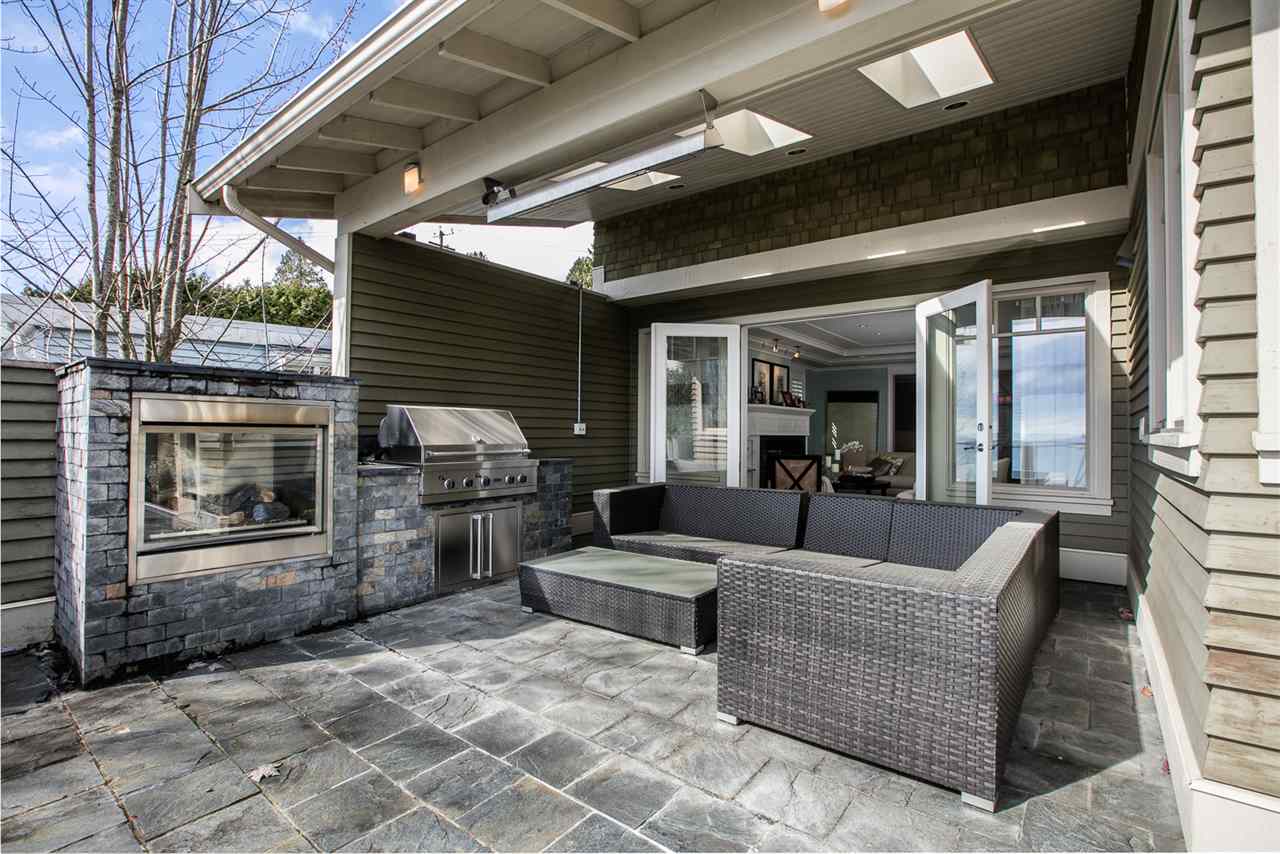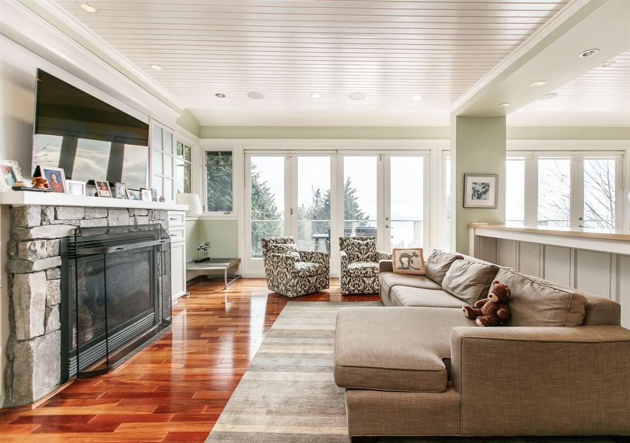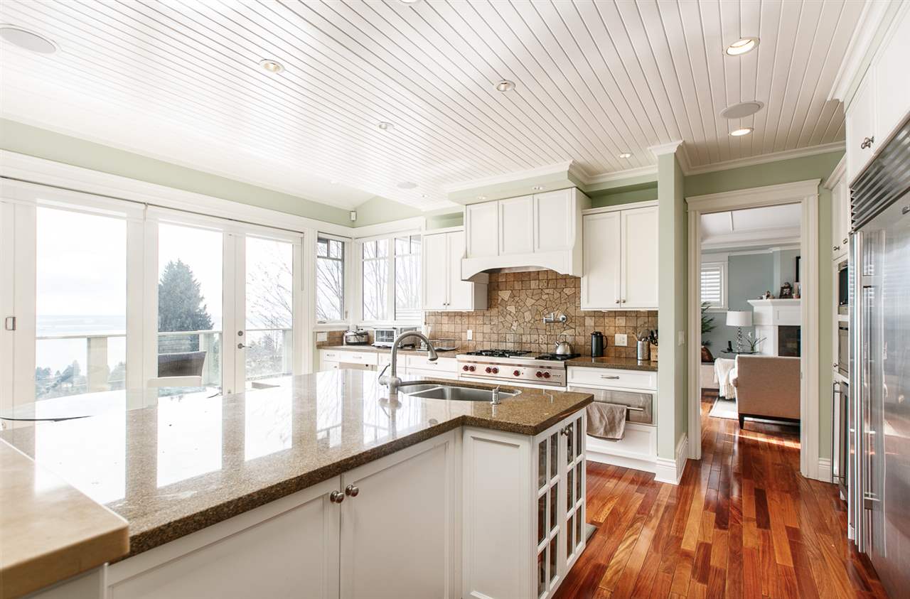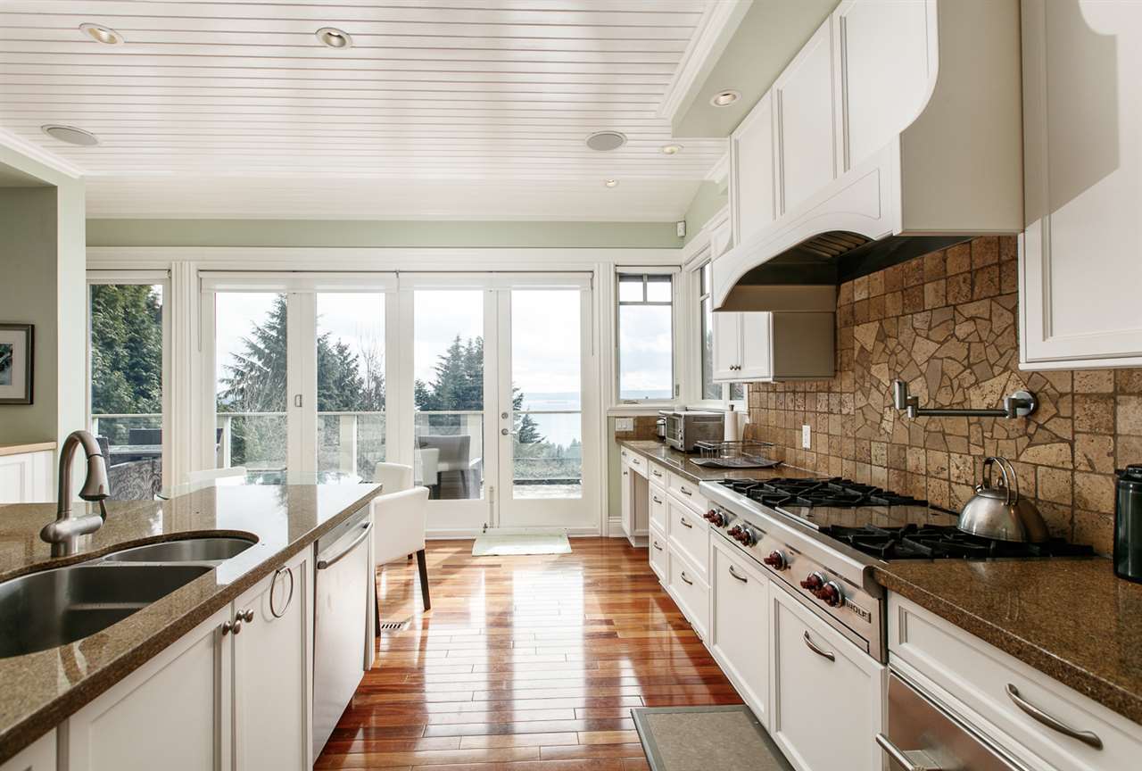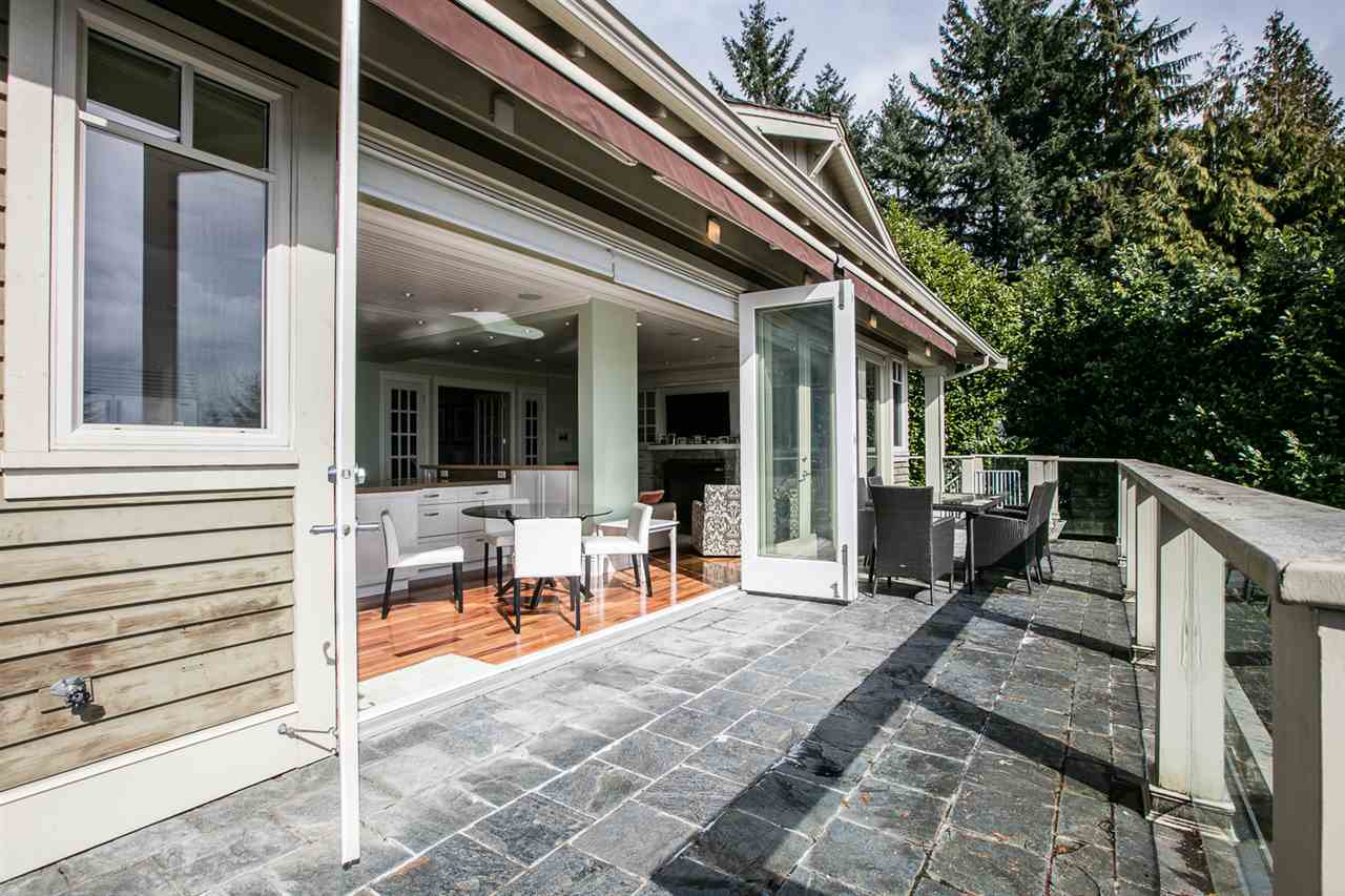 Upper Dundarave resides on a south-side property w/spectacular ocean & island views! Feat approx. 5,000 sq ft on 3 levels w/bright, open floor-plan & spacious formal & informal entertainment areas – all opening out to a fabulous covered veranda w/fireplace & BBQ. Up has 4 en-suited bedrooms incl fantastic master, spa-like en-suite & laundry rm. Main floor has private office, soaring ceilings, gourmet island kit w/adj FR, media center & SS system, built-in cabinetry & mill-work, Brazilian Cherry-wood floors, top-of-the-line appliances.