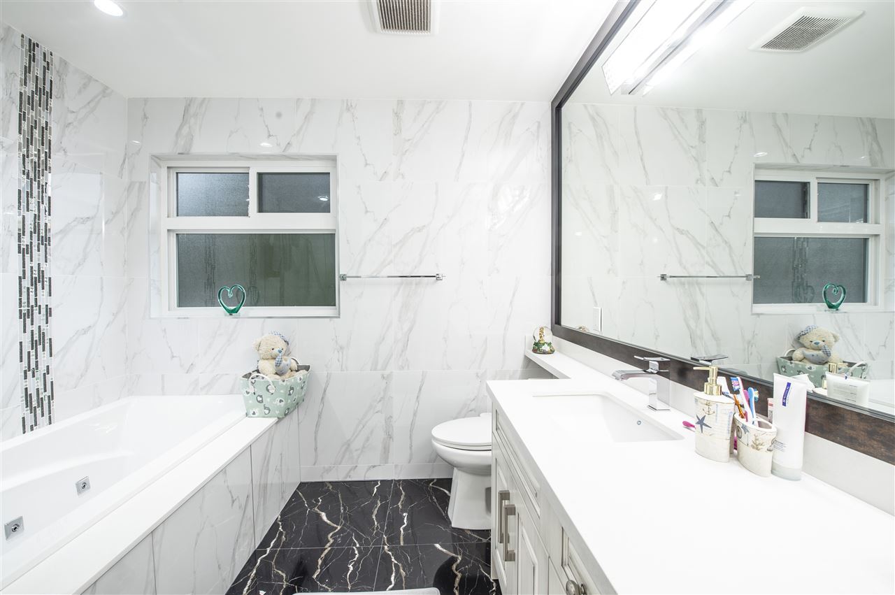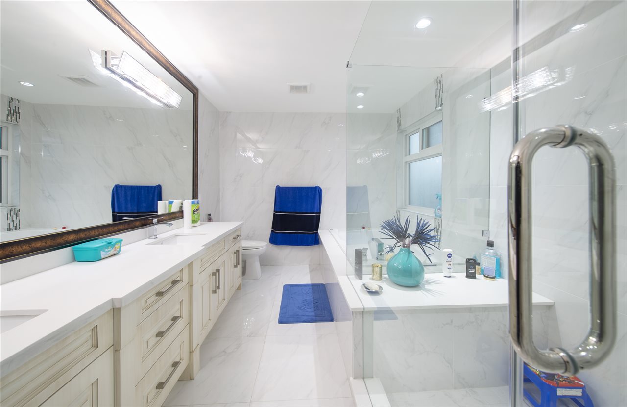 Beautiful custom built house over 5800 sf located in a 7766 sf lot. 9 bedrooms 9 bathrooms.Main floor has 2 bedrooms & 2 bath with huge family room, living room, kitchen and spice kitchen. The upper floor has 2 master bedrooms with huge walk-in closet and 2 additional en-suite bedrooms. Fully finished downstairs basement has recreation room, sauna, guest room. Also, the basement has 2 bedroom legal suite with separate entrance and another one bedroom suite, good tenants. Easy access to Patullo Bridge, close to city centre, transportation, school and shopping malls. Fully fenced back yard and storage room. 2-5-10 warranty.Solid and high quality house !A few minutes to Surrey Central and skytrain and mall.The most convenient location and also so quiet!Book your private showings before sold!