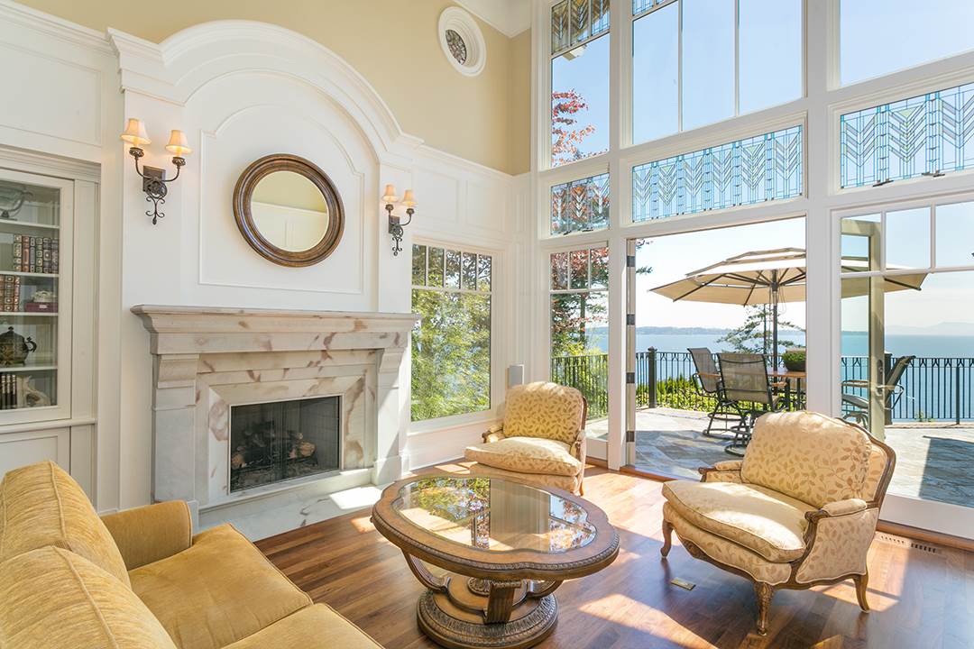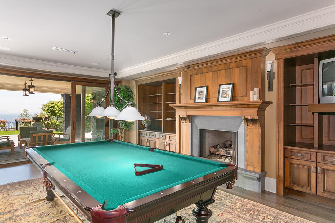 MUST SEE This Elegant Custom 7500 sq. ft. French Inspired Estate on a 23,086 sq. ft. Waterfront Property in Gorgeous White Rock BC. This Masterpiece features only the finest materials & craftsmanship: Boasts 23 feet high Foyer & Living Room. Solid Walnut Floors, Custom Rounded glass walls, Steel framing & Dynamic Doors & Windows, massive sliders open to Balconies. Stunning Tea room, eating area, leads to concrete open & covered decks w/Timber frame Granite fireplaces. Extraordinary Ocean views direct South to USA & White Rock Pier. All areas enjoy Professionally designed landscape indoors & out. 4 well appointed en-suites, gym, steam room, billiards, sound proofed media Quad Garage. Schools Semiahmoo & Bayridge. Beach access on Terry Road.