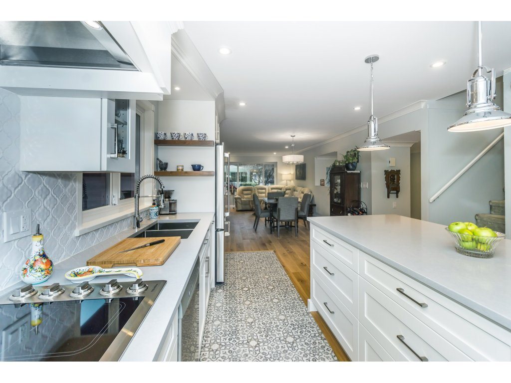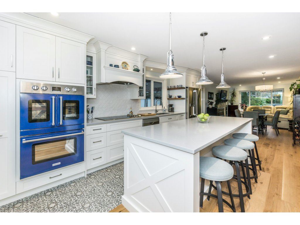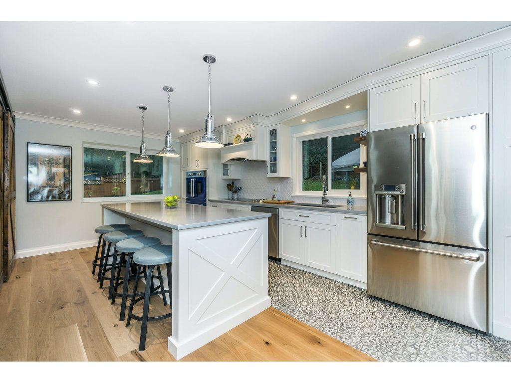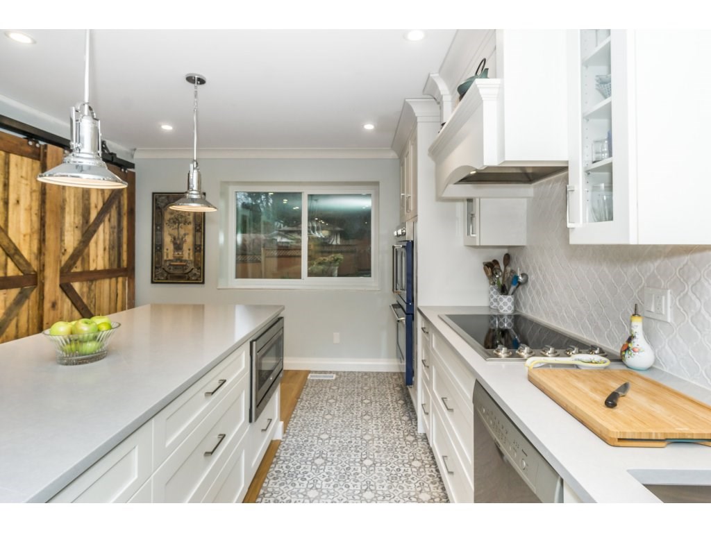 Top of the line gourmet kitchen with Blue Star double wall oven, induction 36 inch cooktop, GE Cafe fridge, Silestone Quartz countertops, Columbia cabinetry including pull-out pantry and 8 foot island with drawers. New windowsin March 2018 keep the the house cool in the summer, warm in winter months, and heating bills are low. Wood burning fireplace adds a cozy feel to open concept living and dining area which features wide plank egineered oak hardwood flooring. Crown mouldings through-out the main floor, smooth ceiling, and unique reclaimed barnwood doors on a huge pantry cupboard. Quiet culdesac close to West Coast Express. Two multi-variety fruit trees 1 pear and 1 apple.