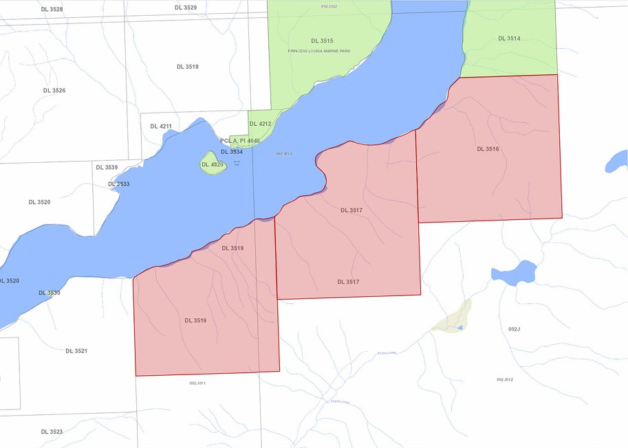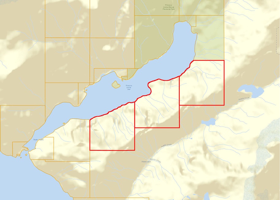DL 3516, 3517, 3519 PRINCESS LOUISA INLET, EGMONT. 1,783 acres with 4.5 kms of ocean frontage & 3 titles of land on the south side of Princess Louisa Inlet on the Sunshine Coast. Situated approximately 100 kms north of Vancouver. This property adjoins conservation land surrounding famous yachting destination Chatterbox Falls. Large timber component & carbon credit potential. Private retreat & land bank for long term investment or conservation project. A rare opportunity to purchase such a significant oceanfront acreage so close to Vancouver.