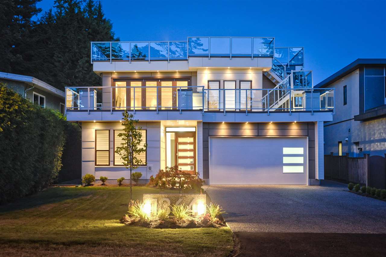 Located in desirable Ocean Park, this professionally-designed 2-storey transitional style home has a spacious concrete deck overlooking panaramic Pacific Ocean and Gulf Islands. Beautifully engineered hardwood floors with plenty of natural light flow throughout the home's open, airy layout. Features Miele appliances, air conditioning, radiant heat, steam shower, in-ground sprinkler, spice kitchen and full sized rooftop deck. Main floor master bedroom features a luxurious private ensuite. A great neighbourhood with boutique shops, groceries, restaurants, parks and the ocean just a short walk away.