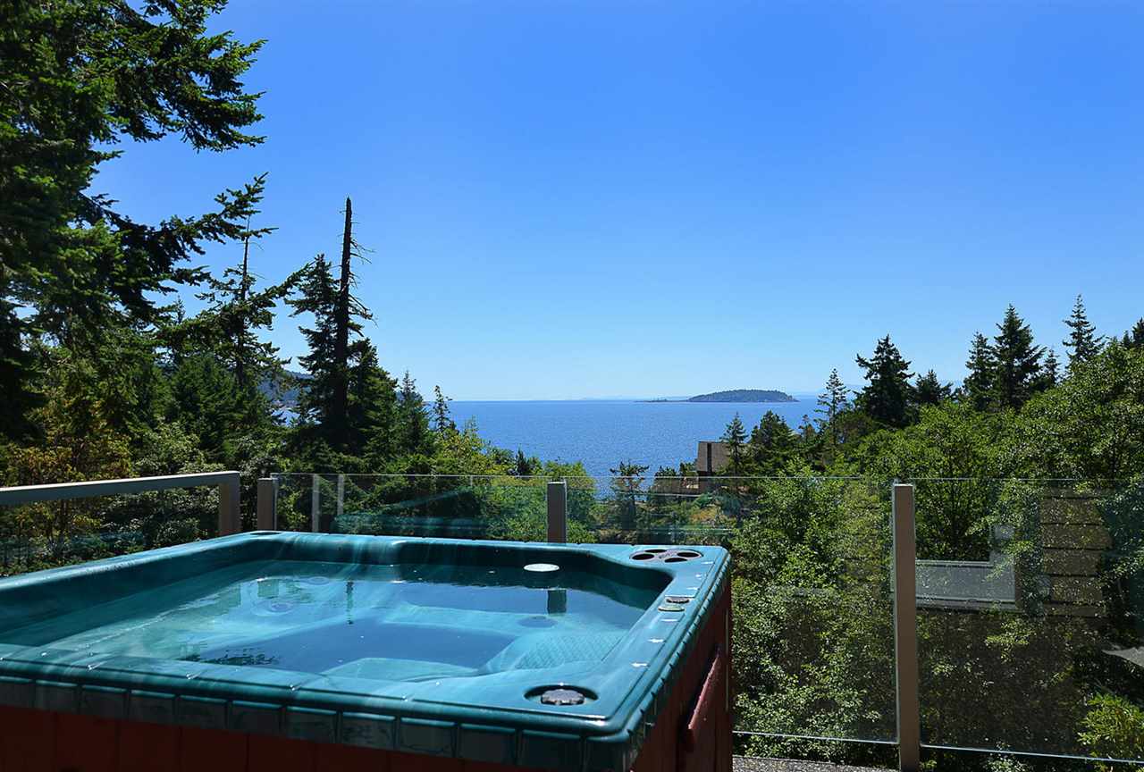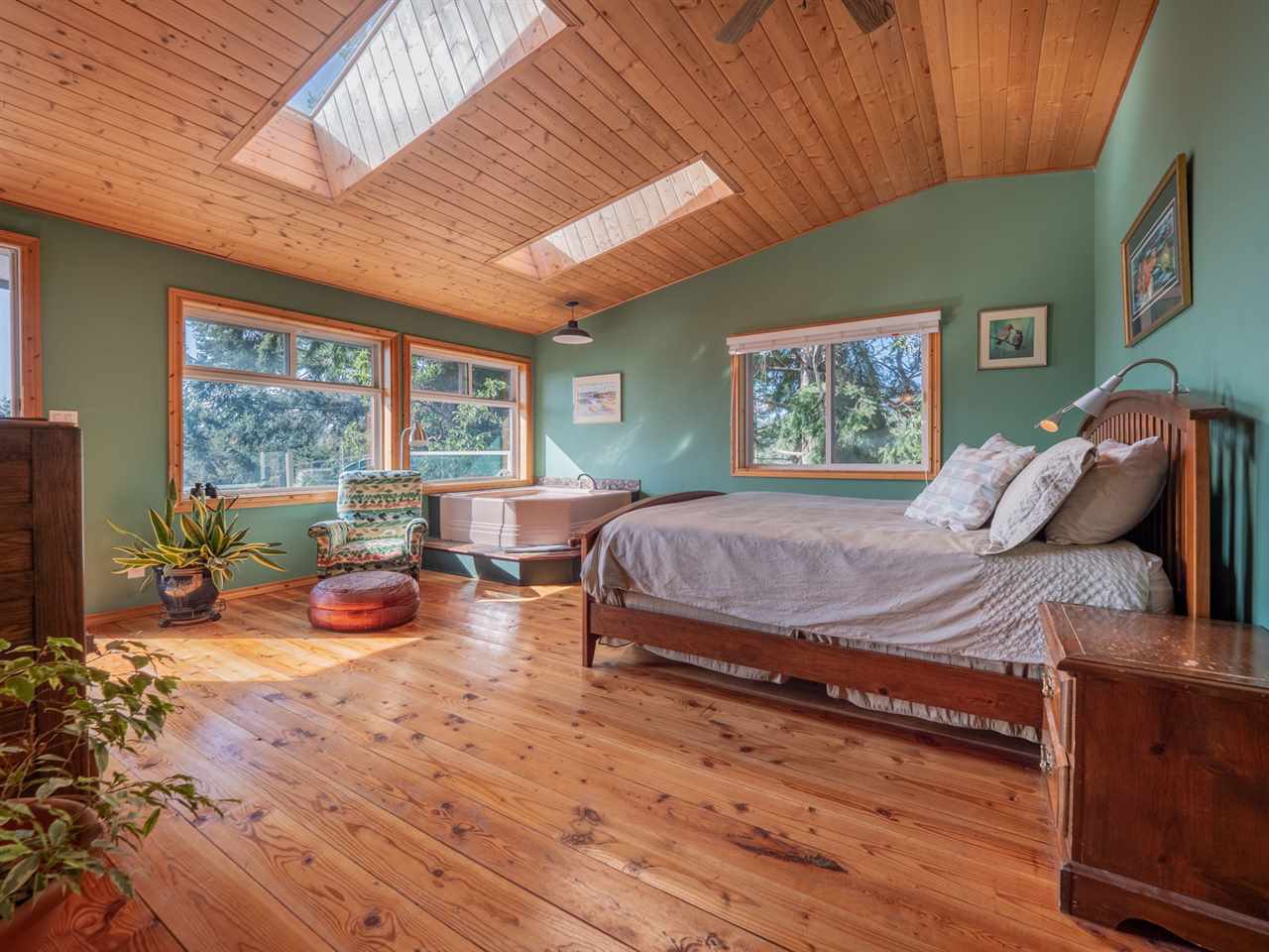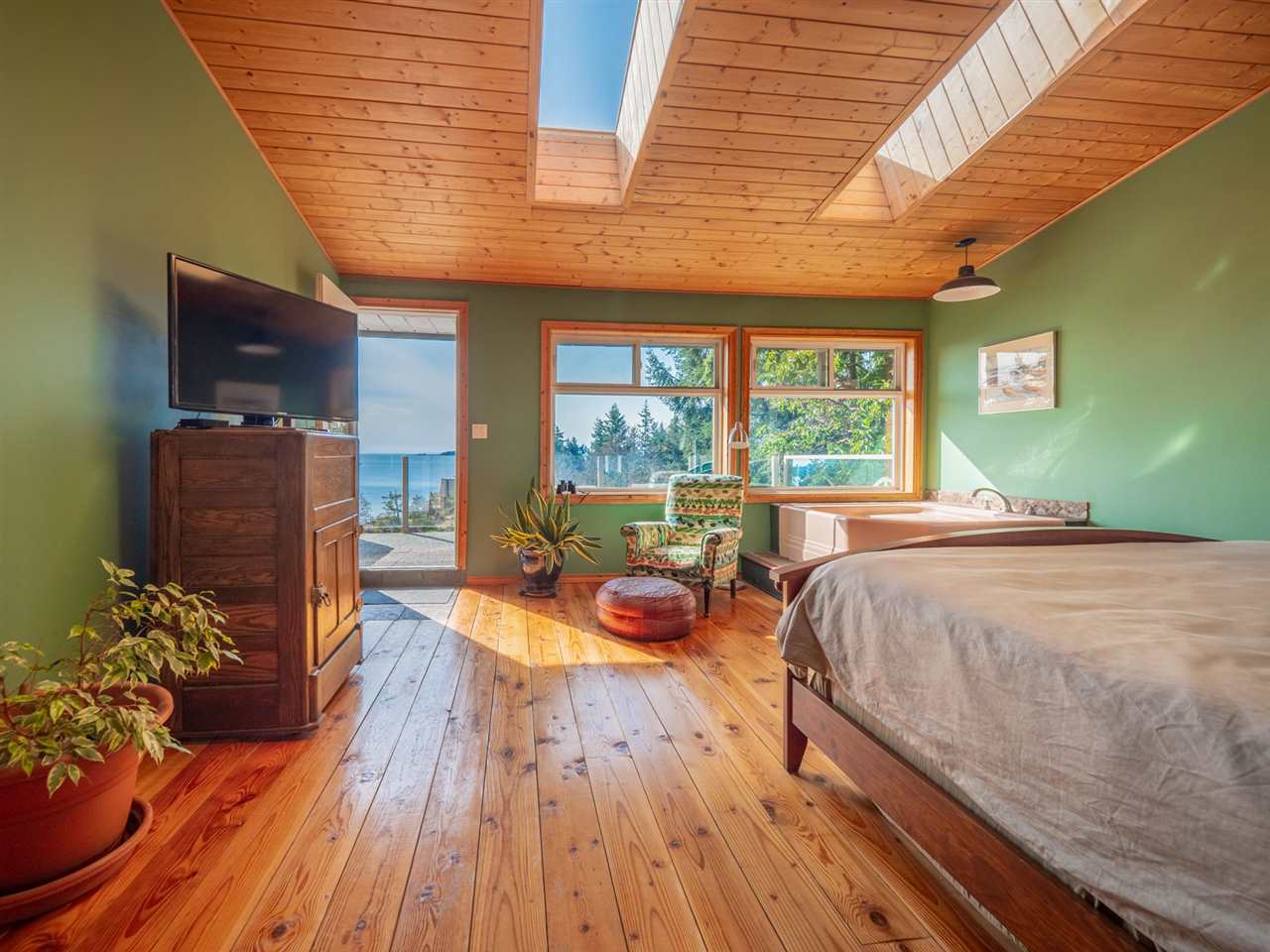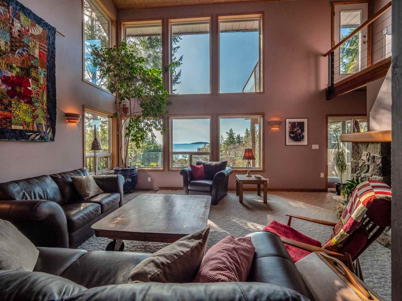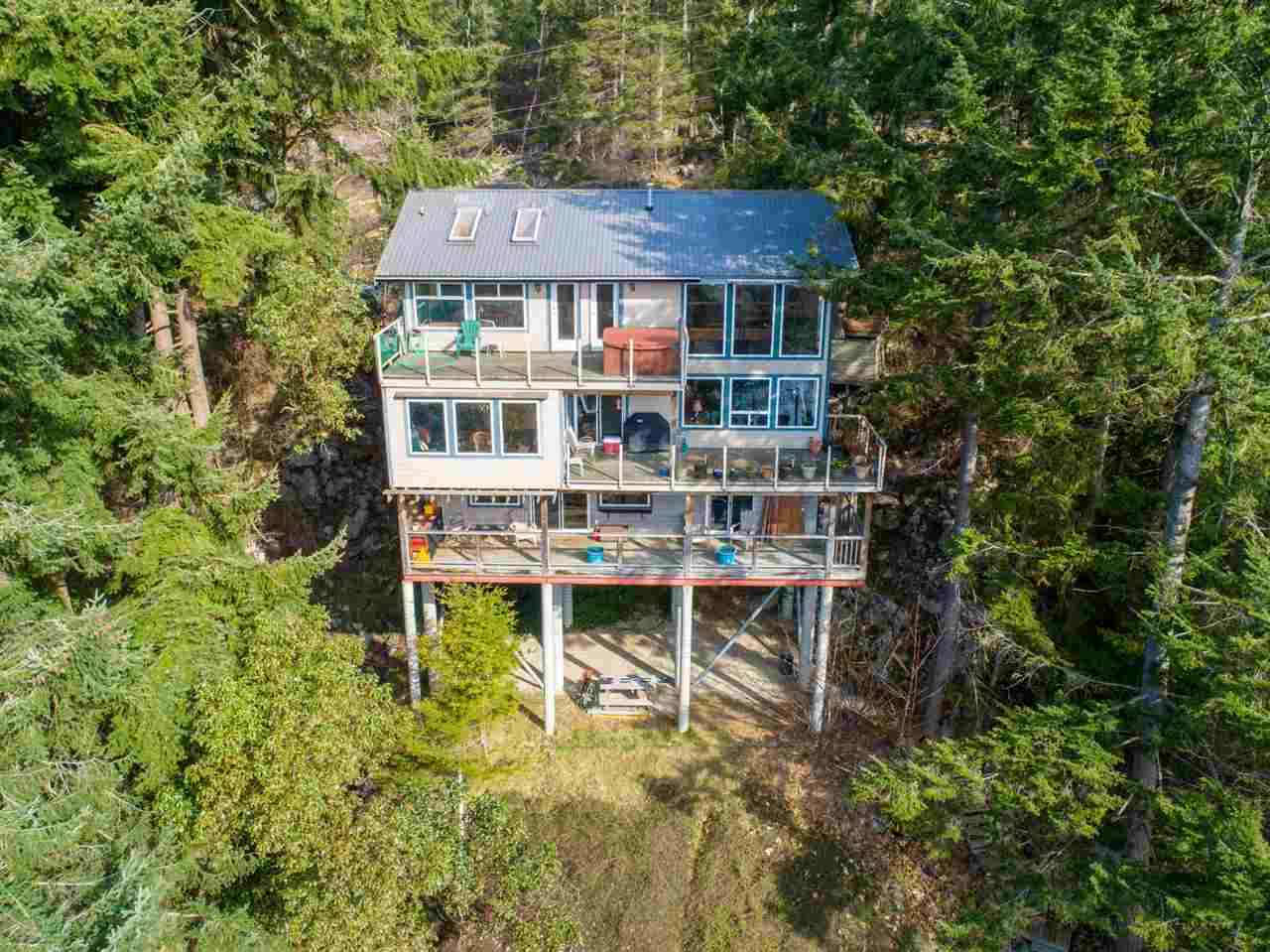 Very private ocean view home in one of Halfmoon Bay's finest neighbourhoods. Just steps from the property you have ocean access for swimming, launching a kayak or just relaxing on the rocks - it's like waterfront but without the expense. The well built & impeccably maintained 3,230 sq.ft. home features an open main floor plan with gorgeous kitchen, 25' vaulted ceilings in l/r, dual sided fireplace & radiant in-floor heating. Top floor is all master w/ separate office & hot tub on the patio, while the 3 guest rooms are on the lower floor all with outdoor patios. One of the largest lots in the area with a level lower property, bordering the lagoon. Watch the cruise ships go by! Community sewer, built in vacuum, Low-E windows and a newer roof, boiler & 2 vehicle carport. Amazing neighbours!