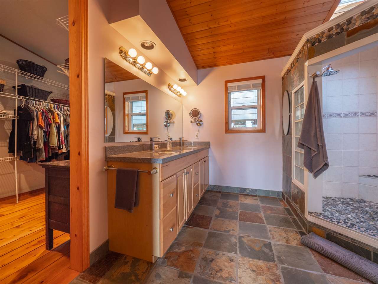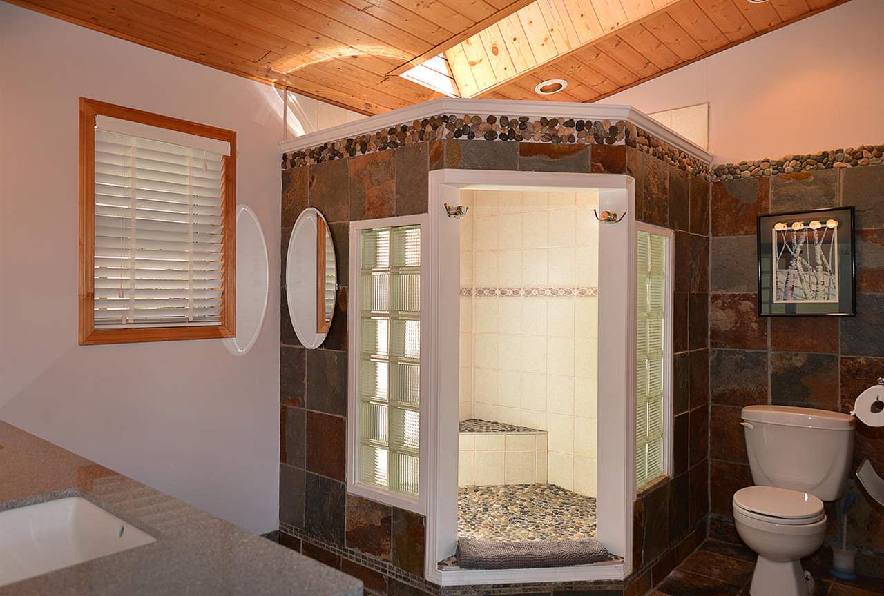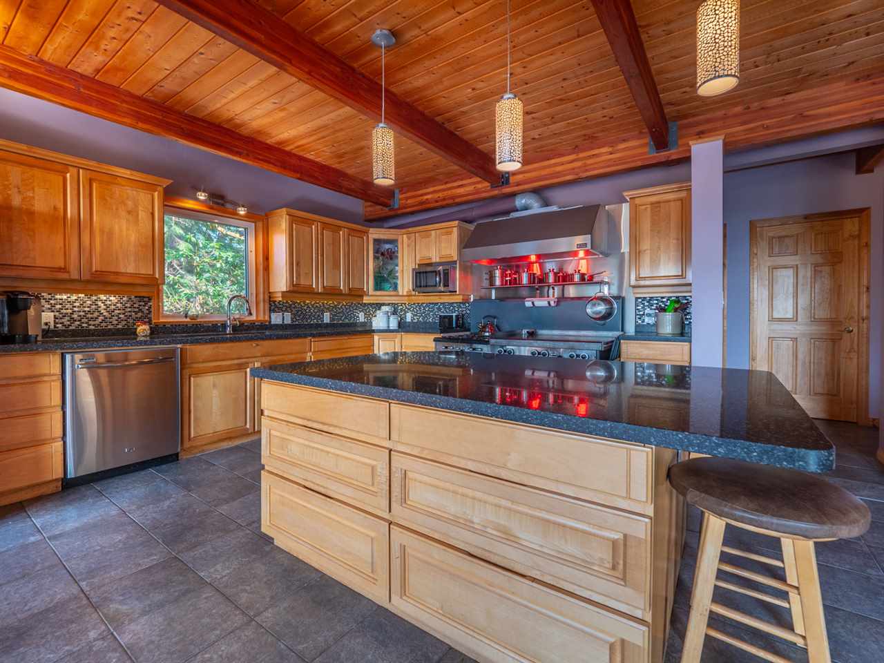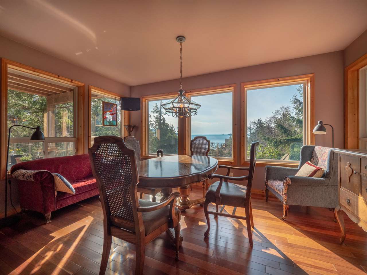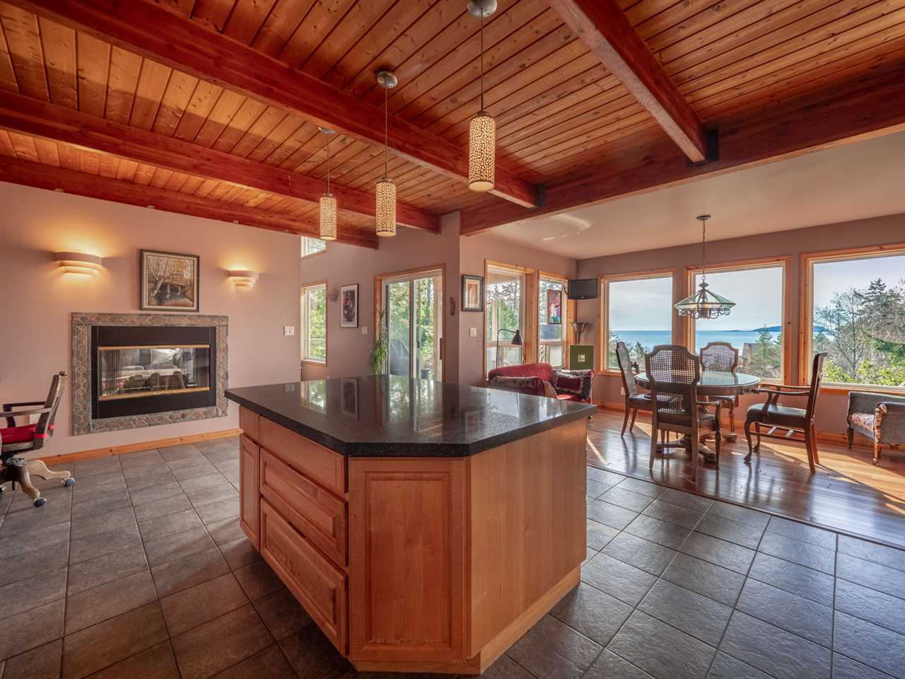 Very private ocean view home in one of Halfmoon Bay's finest neighbourhoods. Just steps from the property you have ocean access for swimming, launching a kayak or just relaxing on the rocks - it's like waterfront but without the expense. The well built & impeccably maintained 3,230 sq.ft. home features an open main floor plan with gorgeous kitchen, 25' vaulted ceilings in l/r, dual sided fireplace & radiant in-floor heating. Top floor is all master w/ separate office & hot tub on the patio, while the 3 guest rooms are on the lower floor all with outdoor patios. One of the largest lots in the area with a level lower property, bordering the lagoon. Watch the cruise ships go by! Community sewer, built in vacuum, Low-E windows and a newer roof, boiler & 2 vehicle carport. Amazing neighbours!
